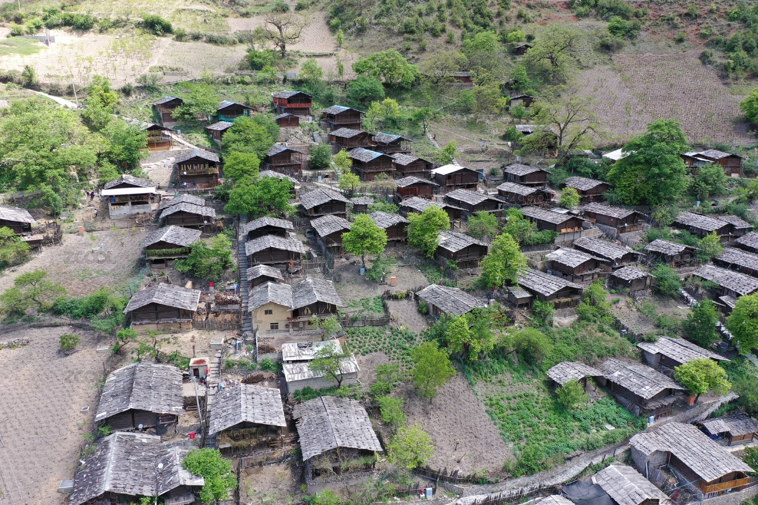云南怒族傈僳族民俗同樂村高空長焦航拍