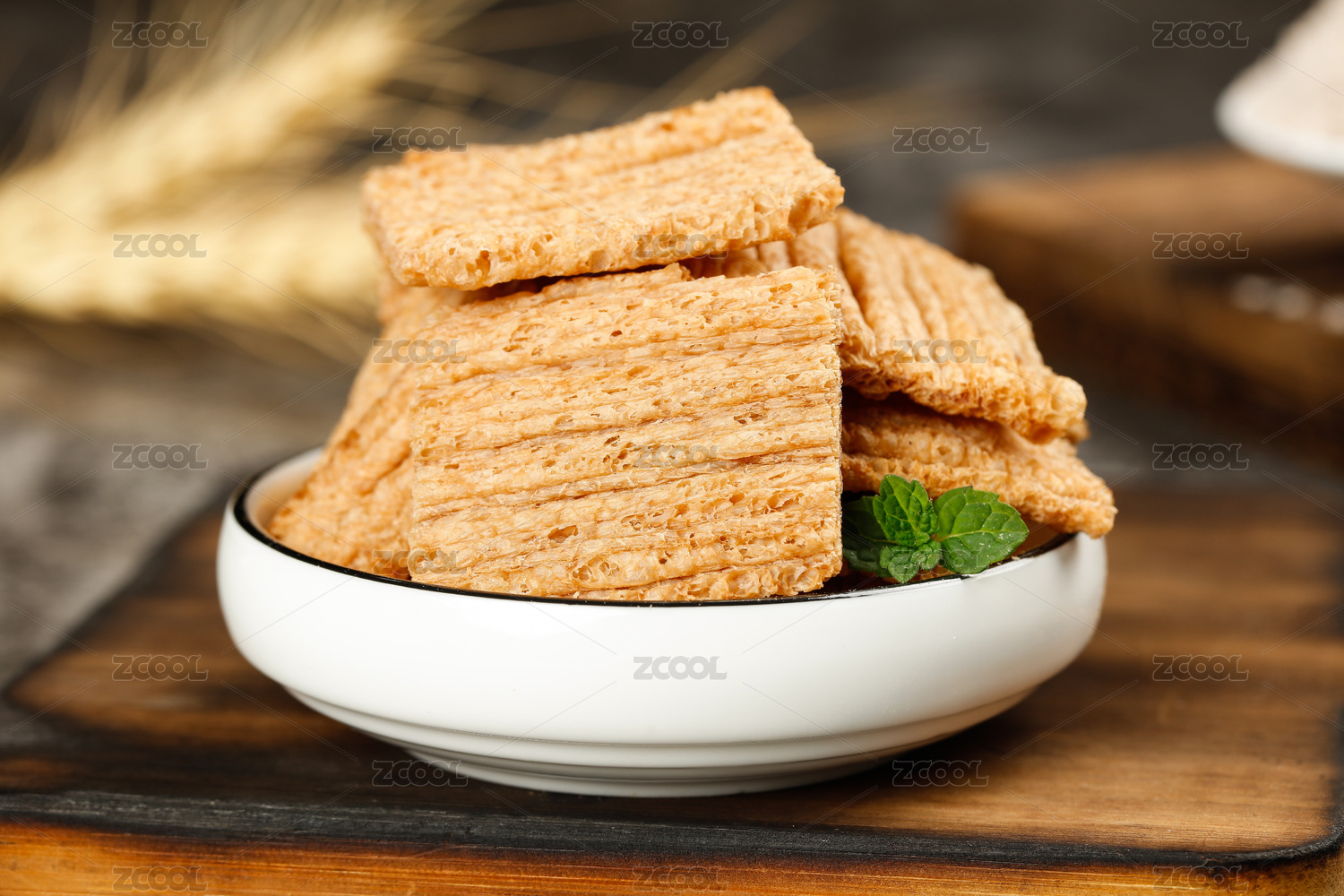 深底木盤里放著粗糧餅干