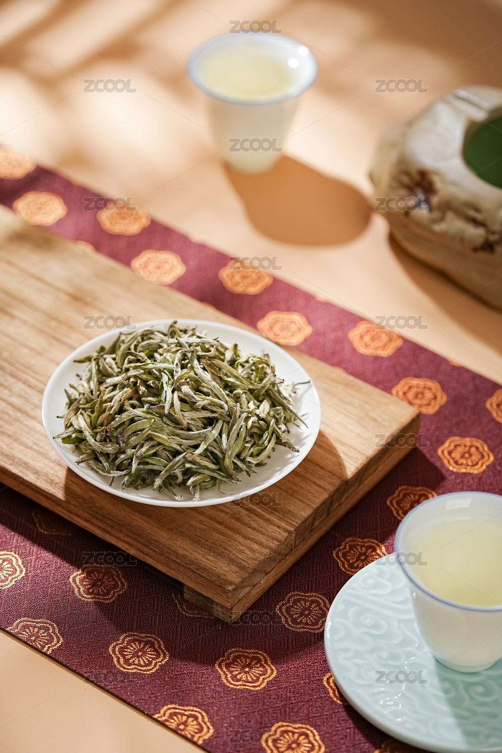 放在茶荷上的白毫銀針茶葉