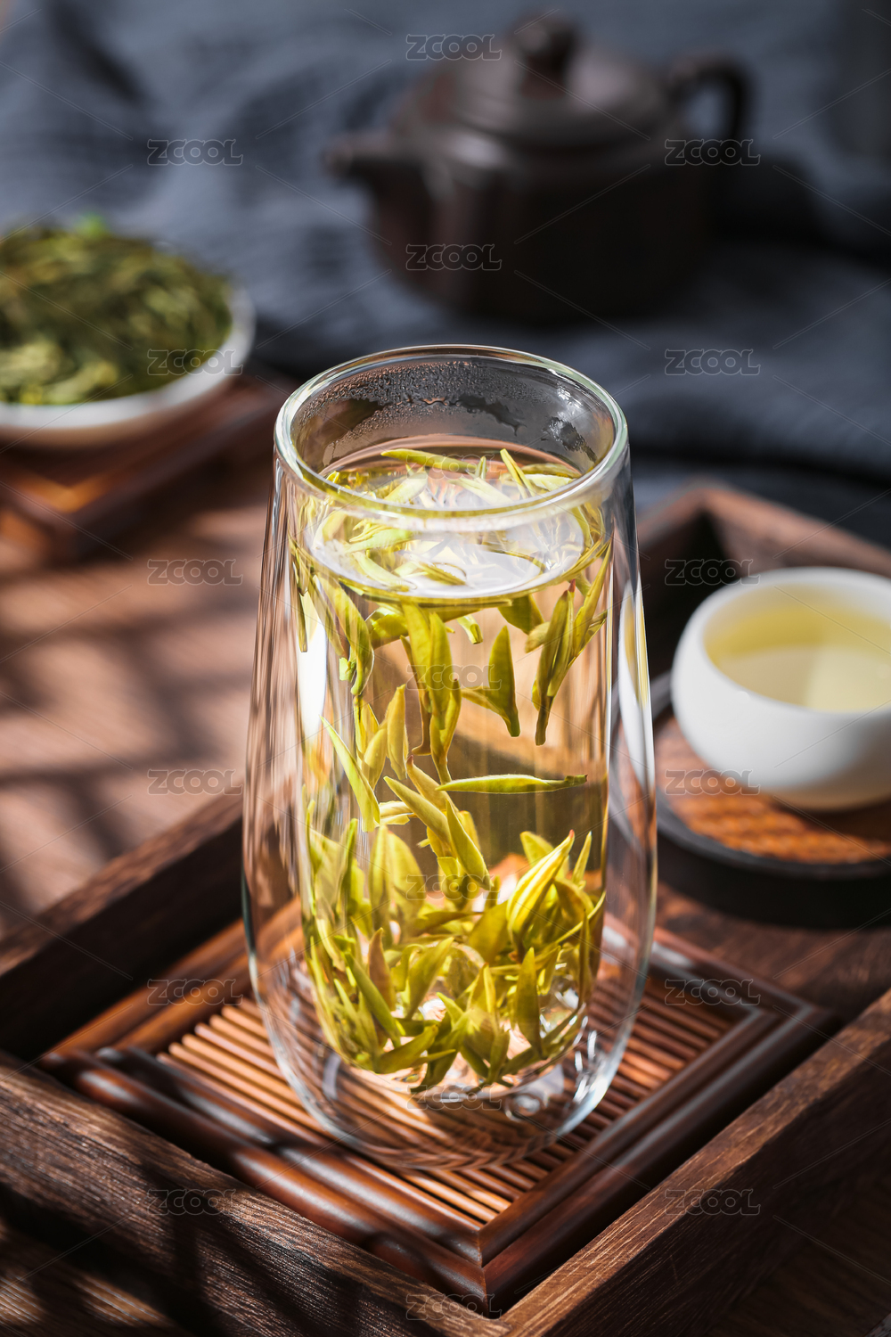 在茶杯中舒展開的茶葉