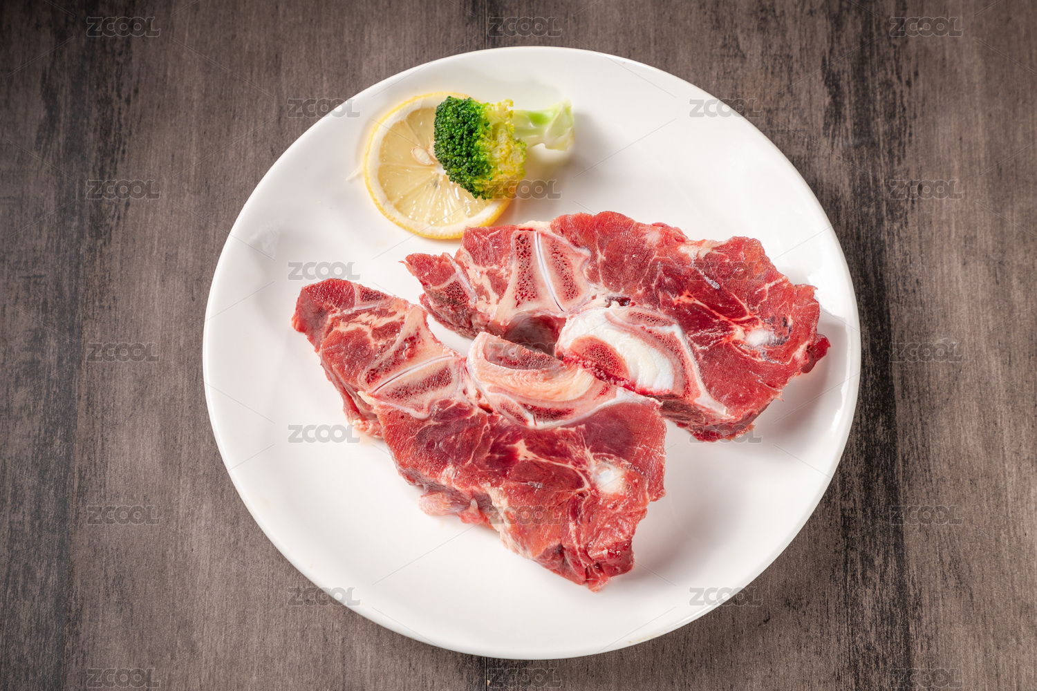 一塊新鮮豬脊排放在盤子里細(xì)節(jié)特寫
