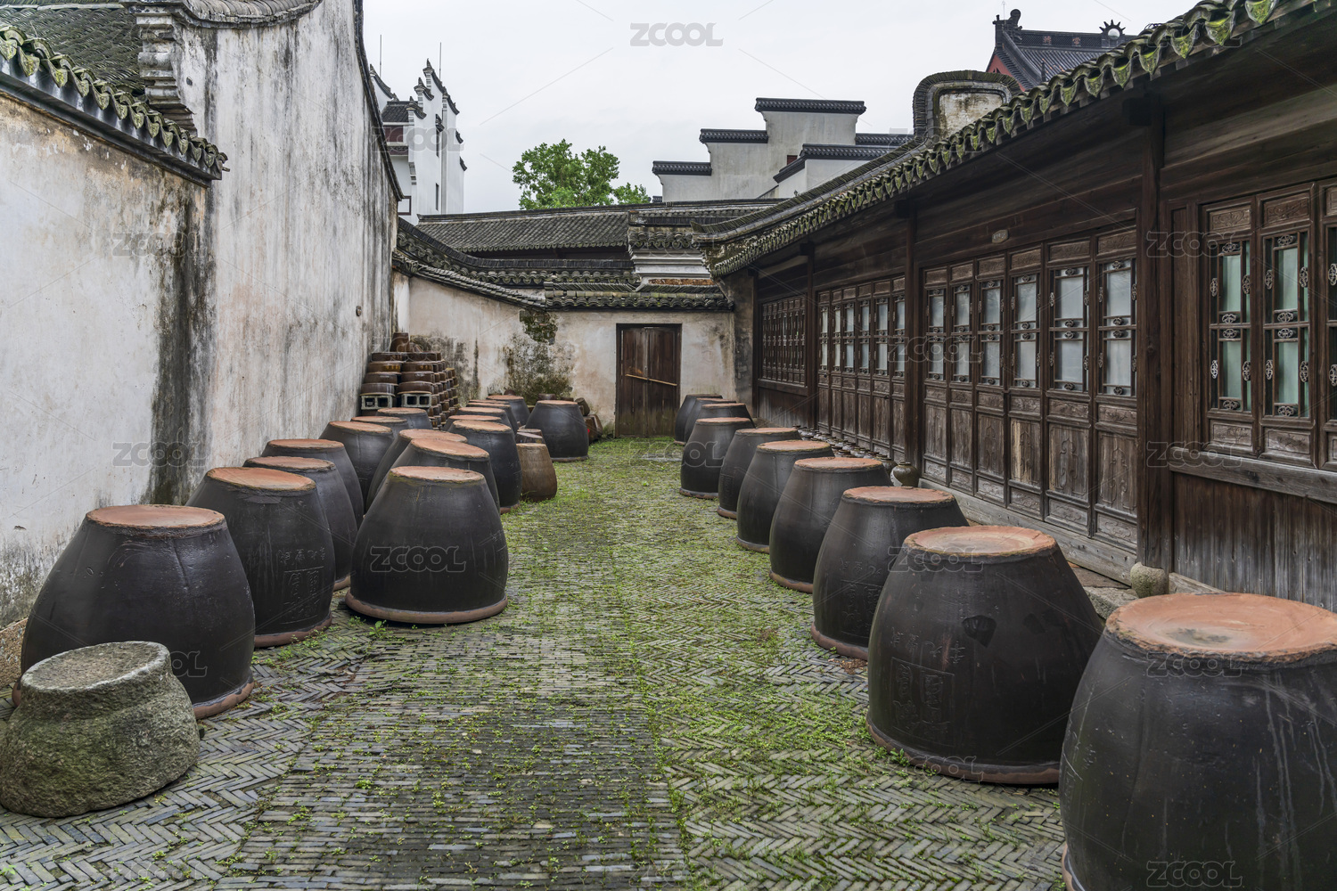 中國烏鎮(zhèn)敘昌醬園晾曬場下雨天