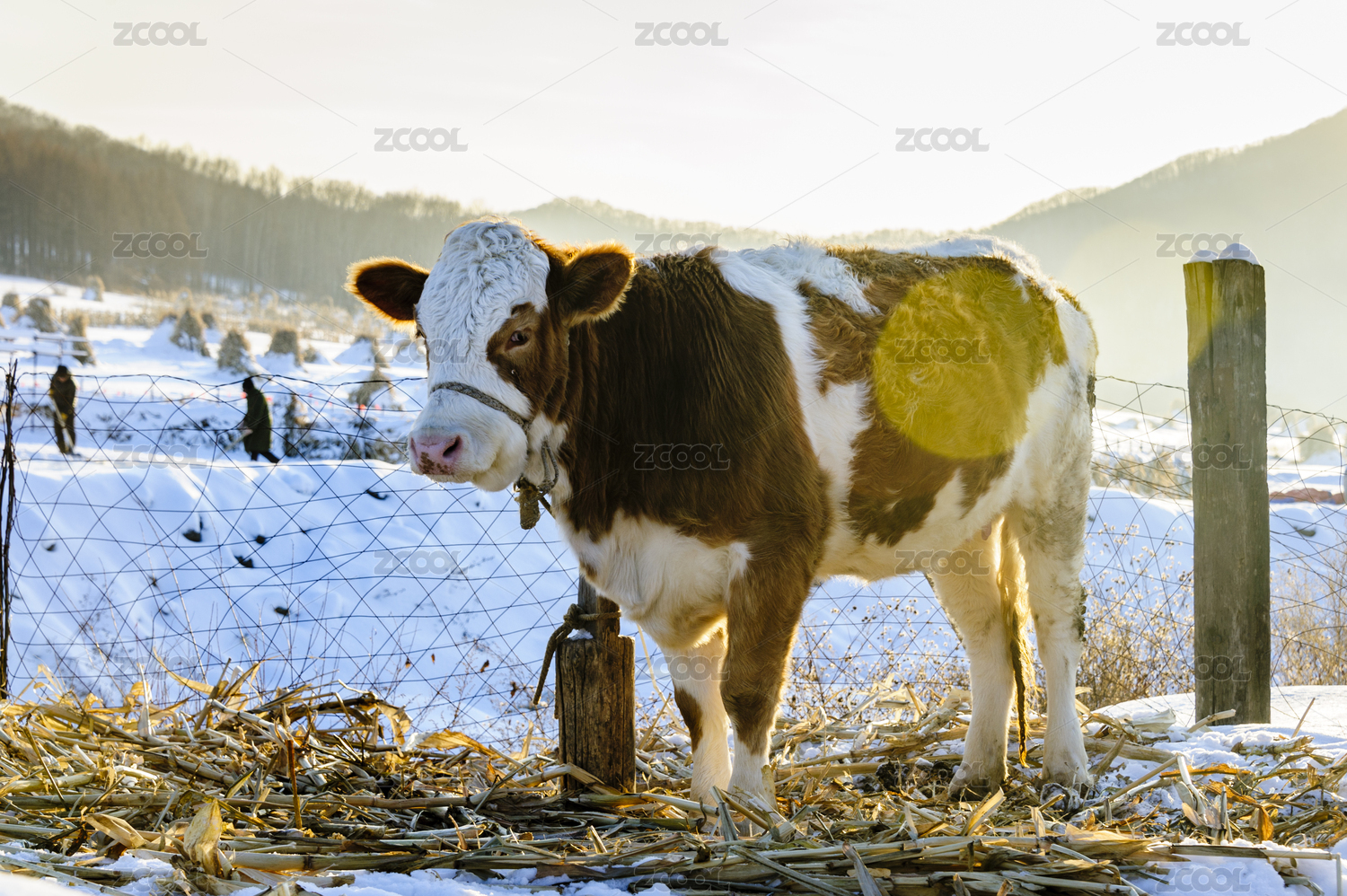 中國東北冬天雪地里飼養(yǎng)的奶牛