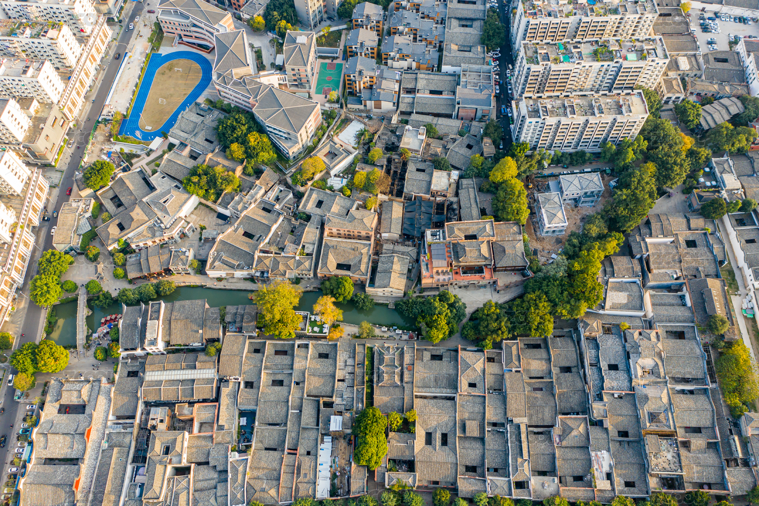 航拍福建福州上下杭?xì)v史文化街區(qū)古建筑群落