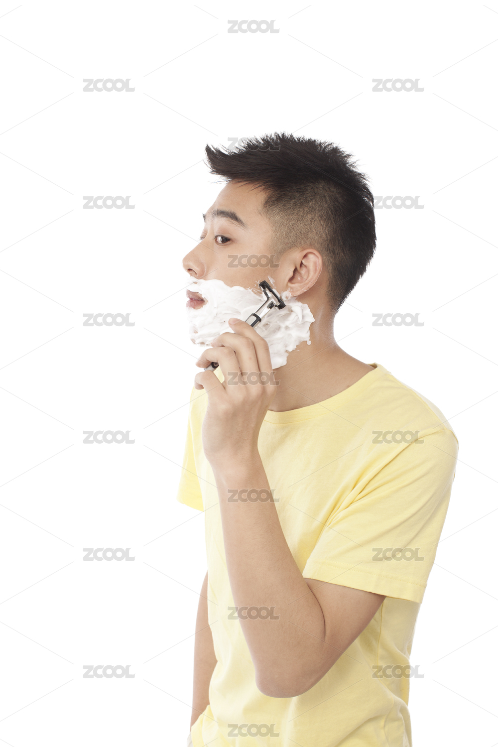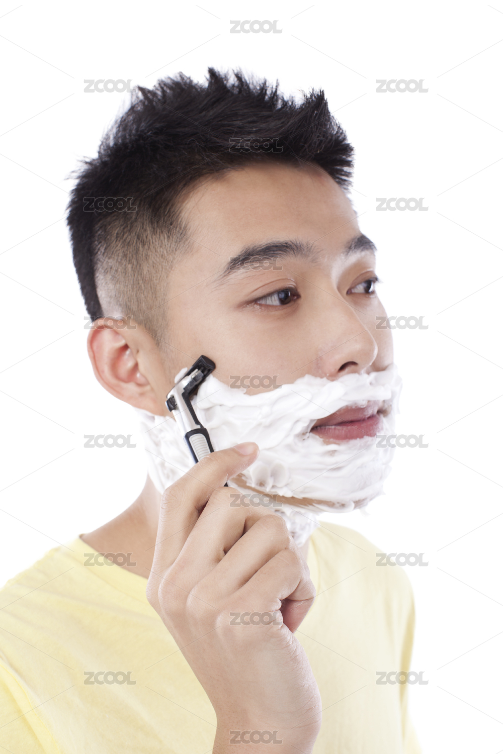 刮胡子的年輕男性