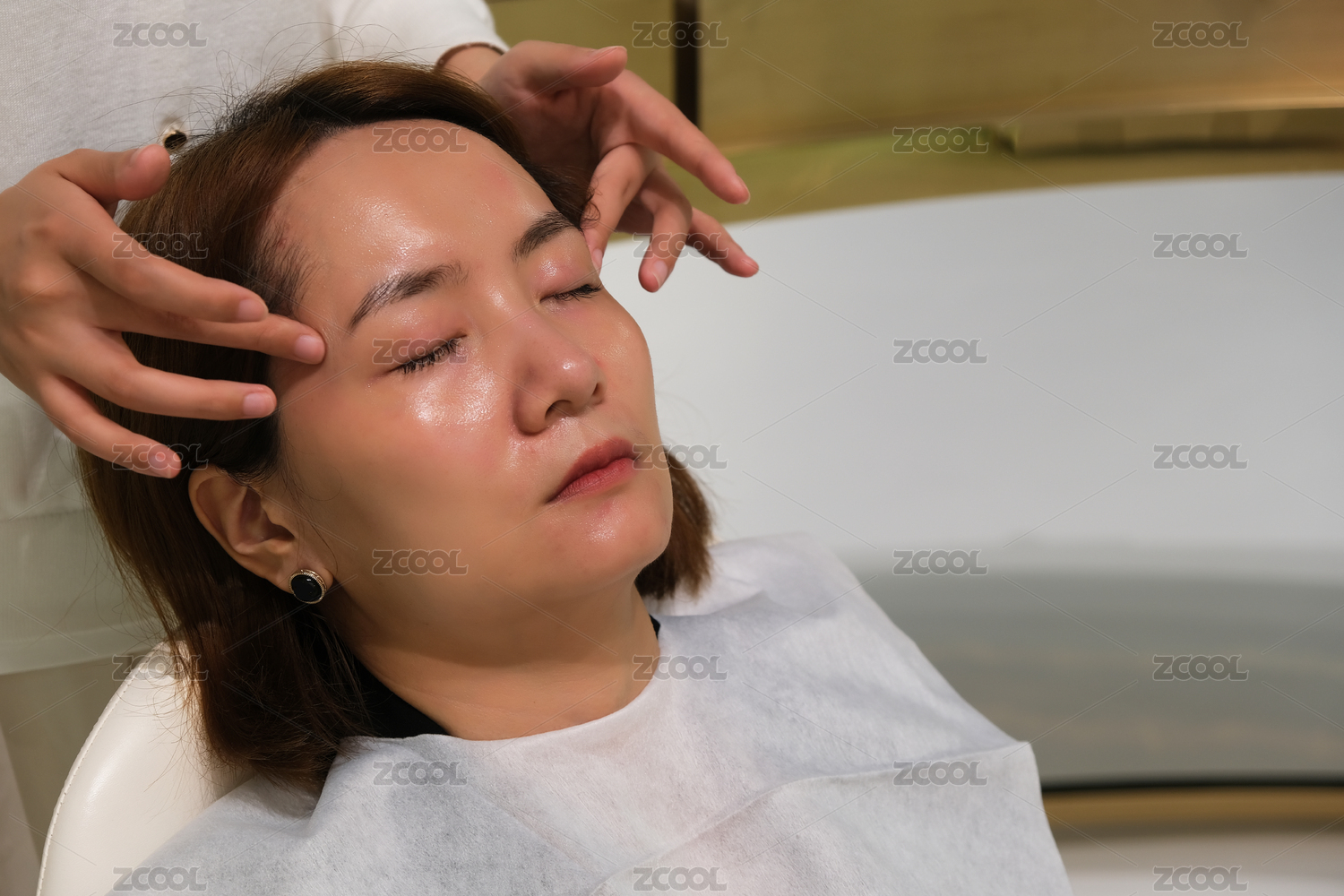 一位年輕的中國女性在進行頭部和臉部按摩