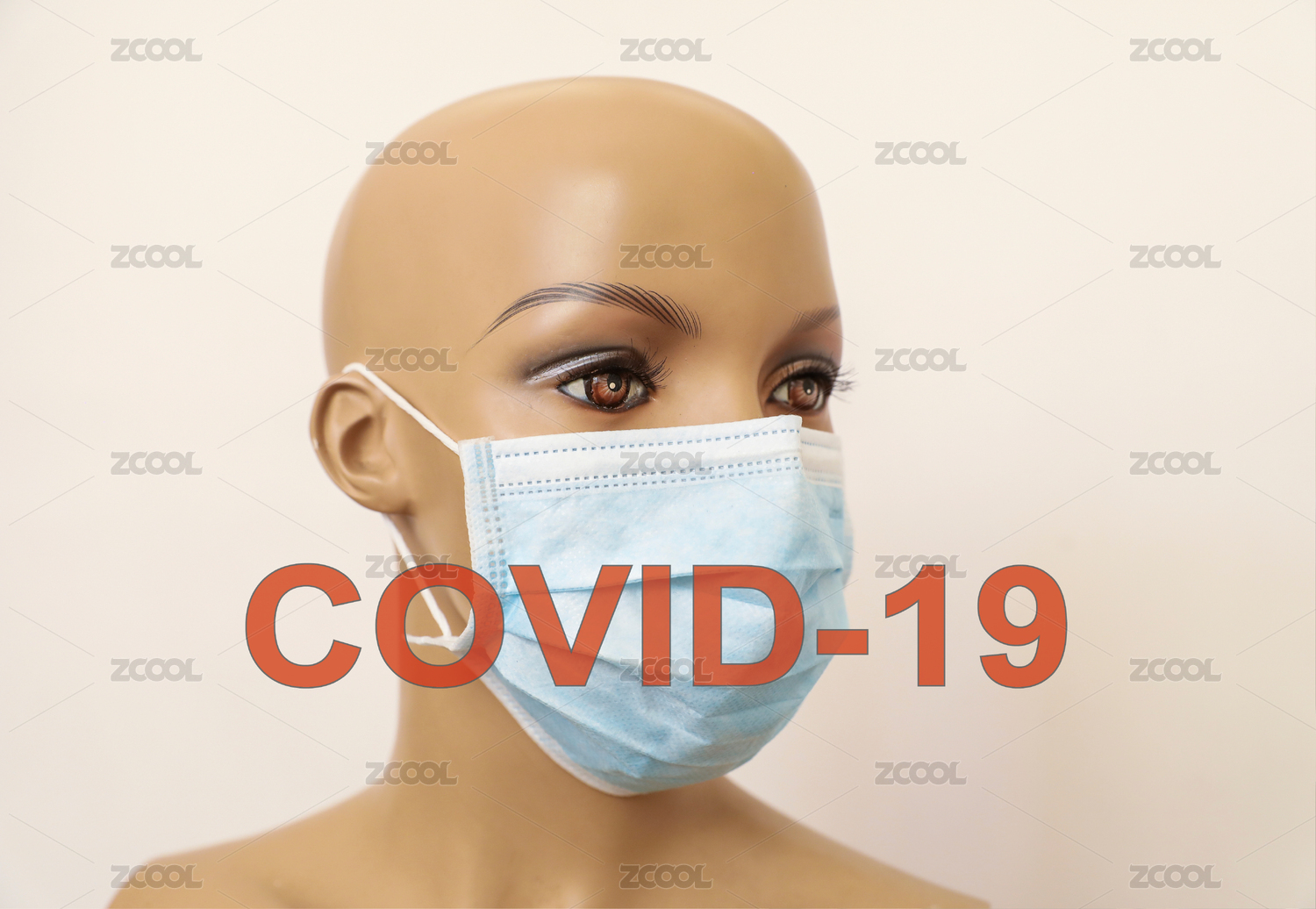 戴口罩人體模型模特和文本COVID-19