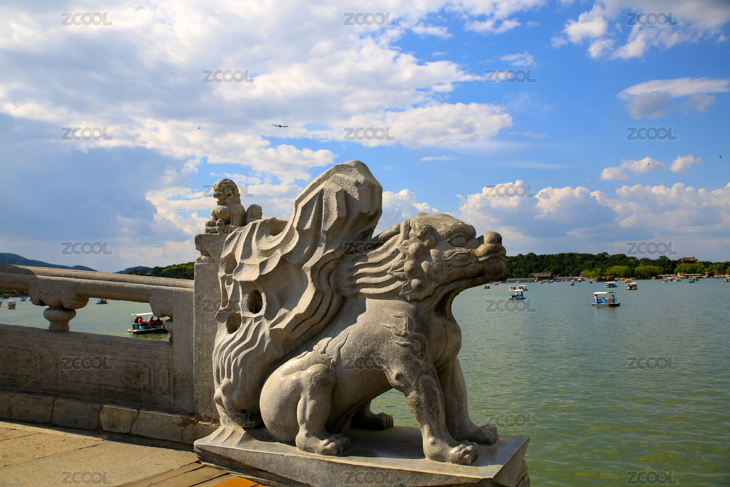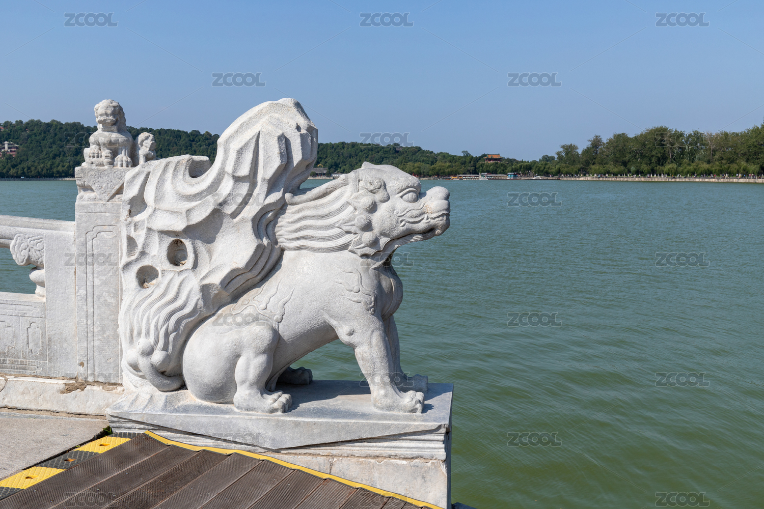 北京市頤和園十七孔橋橋頭酷似麒麟的異獸