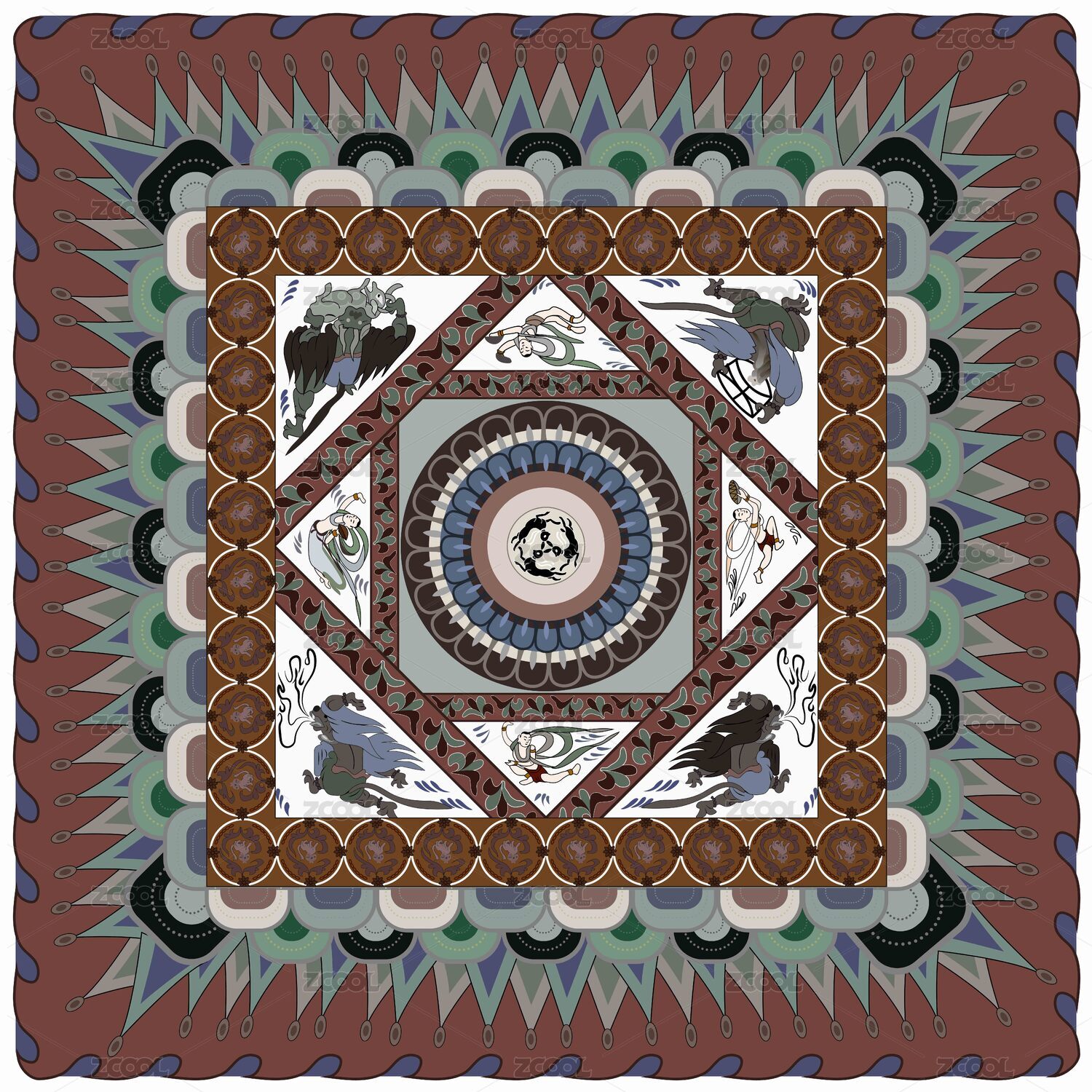 敦煌莫高窟420窟隋代三兔飛天異獸紋套斗