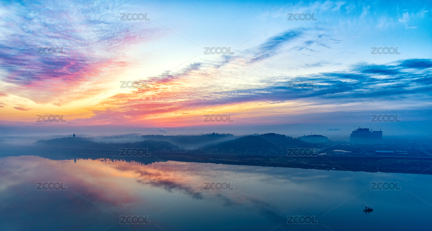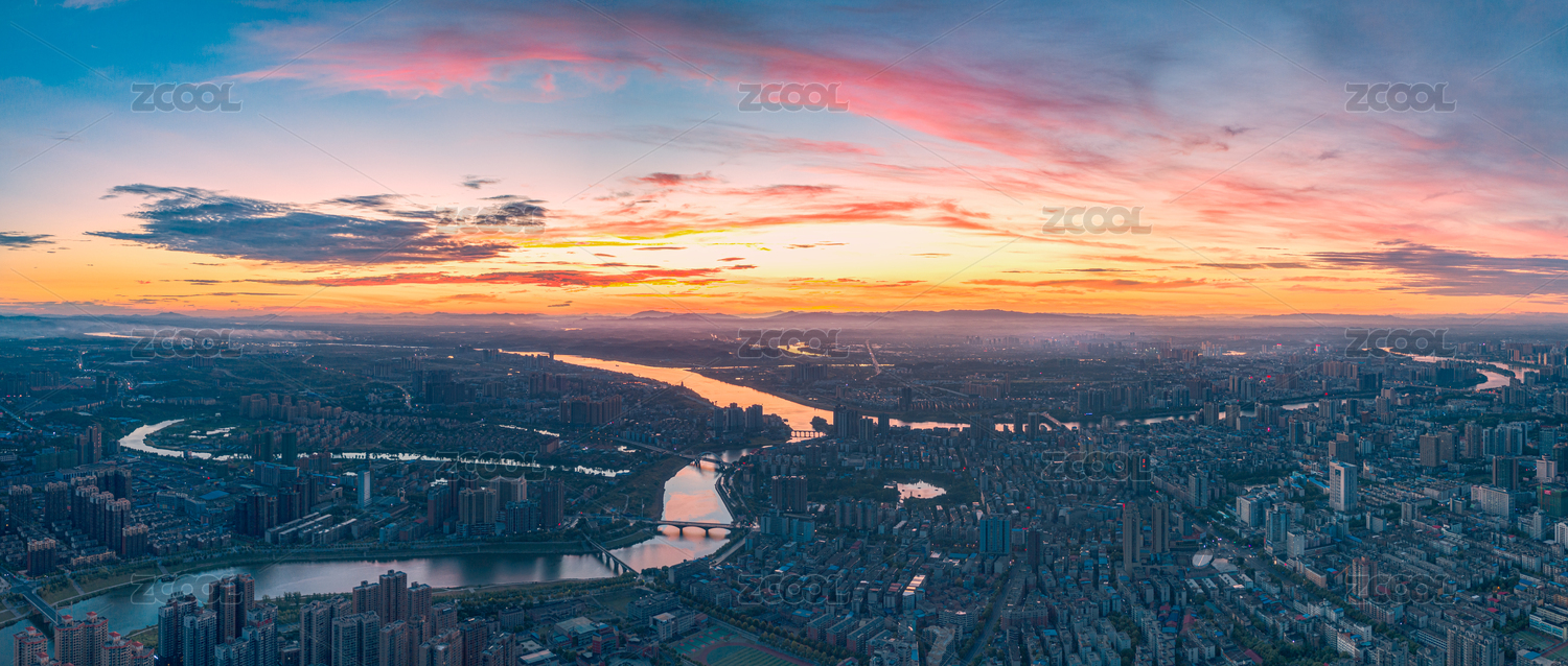 湖南省衡陽市蒸水風(fēng)光帶日出朝霞航拍