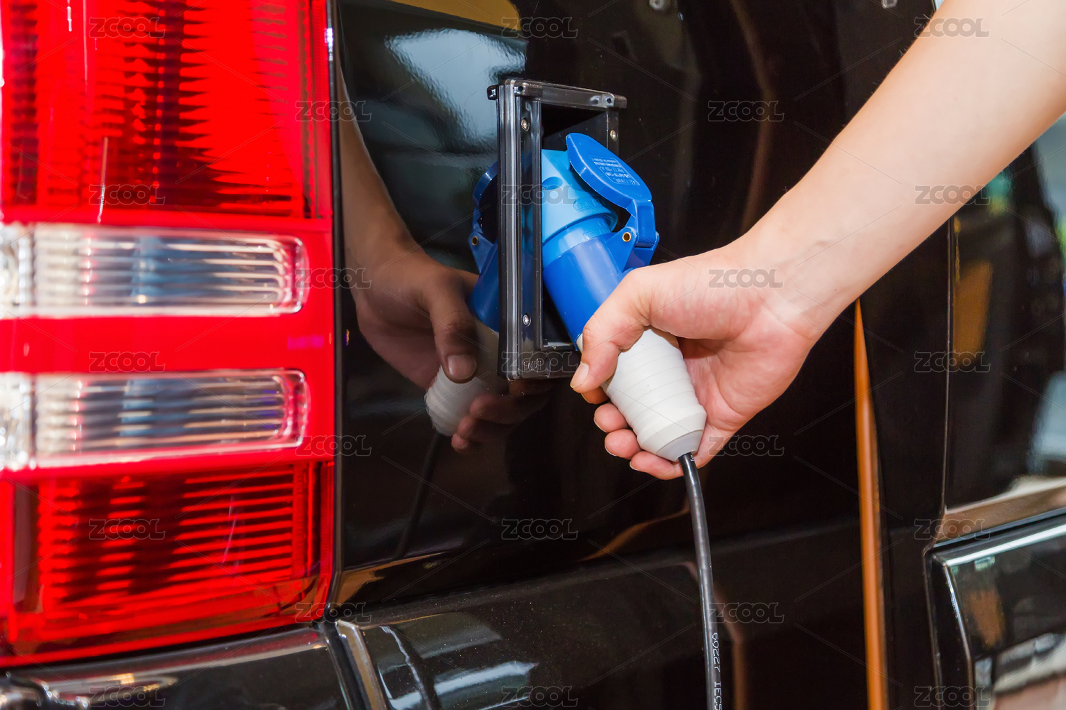 高檔豪華新能源房車充電特寫
