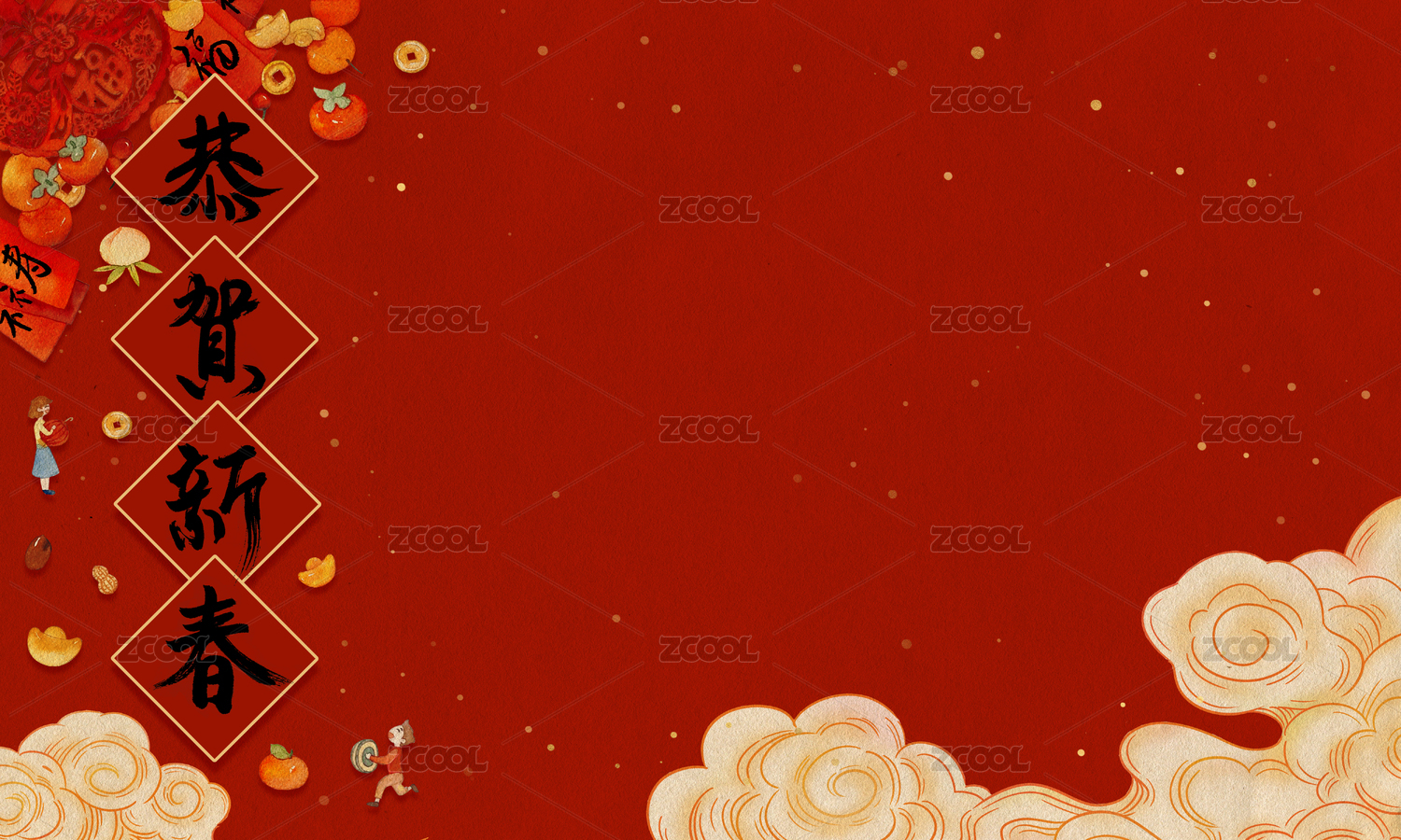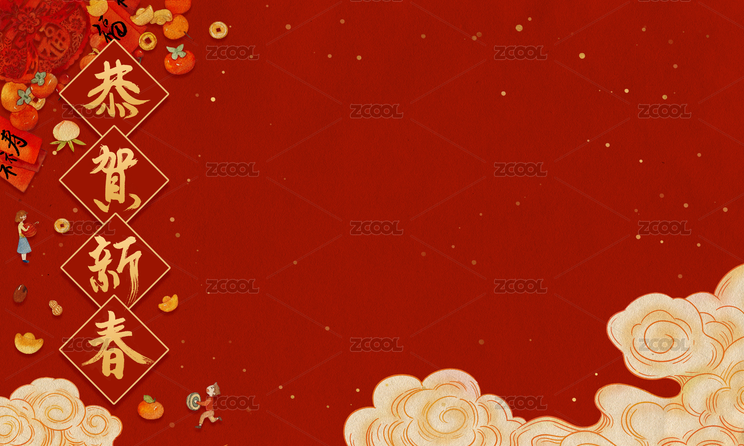 2023恭賀新春除夕剪紙堅果年華新年插畫