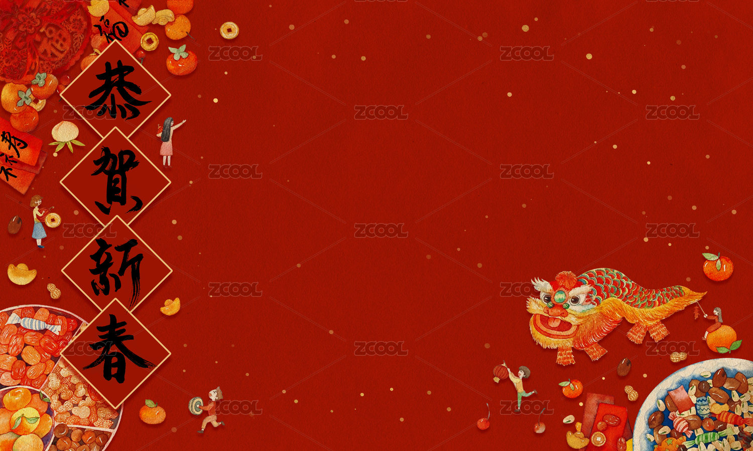 除夕剪紙堅果果盤年華新年插畫