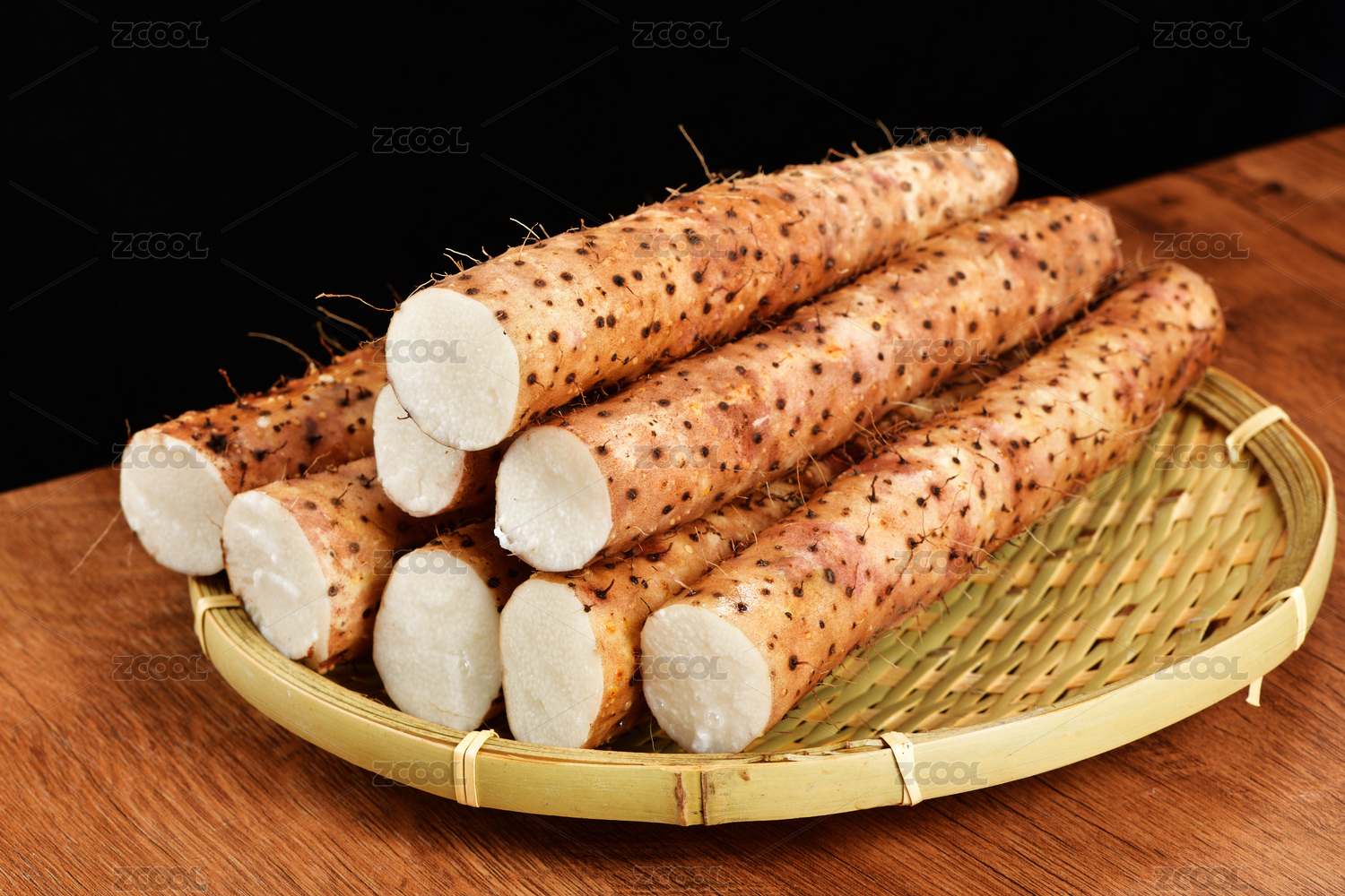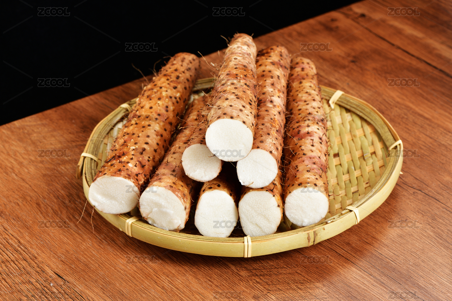 一竹盤新鮮的山藥