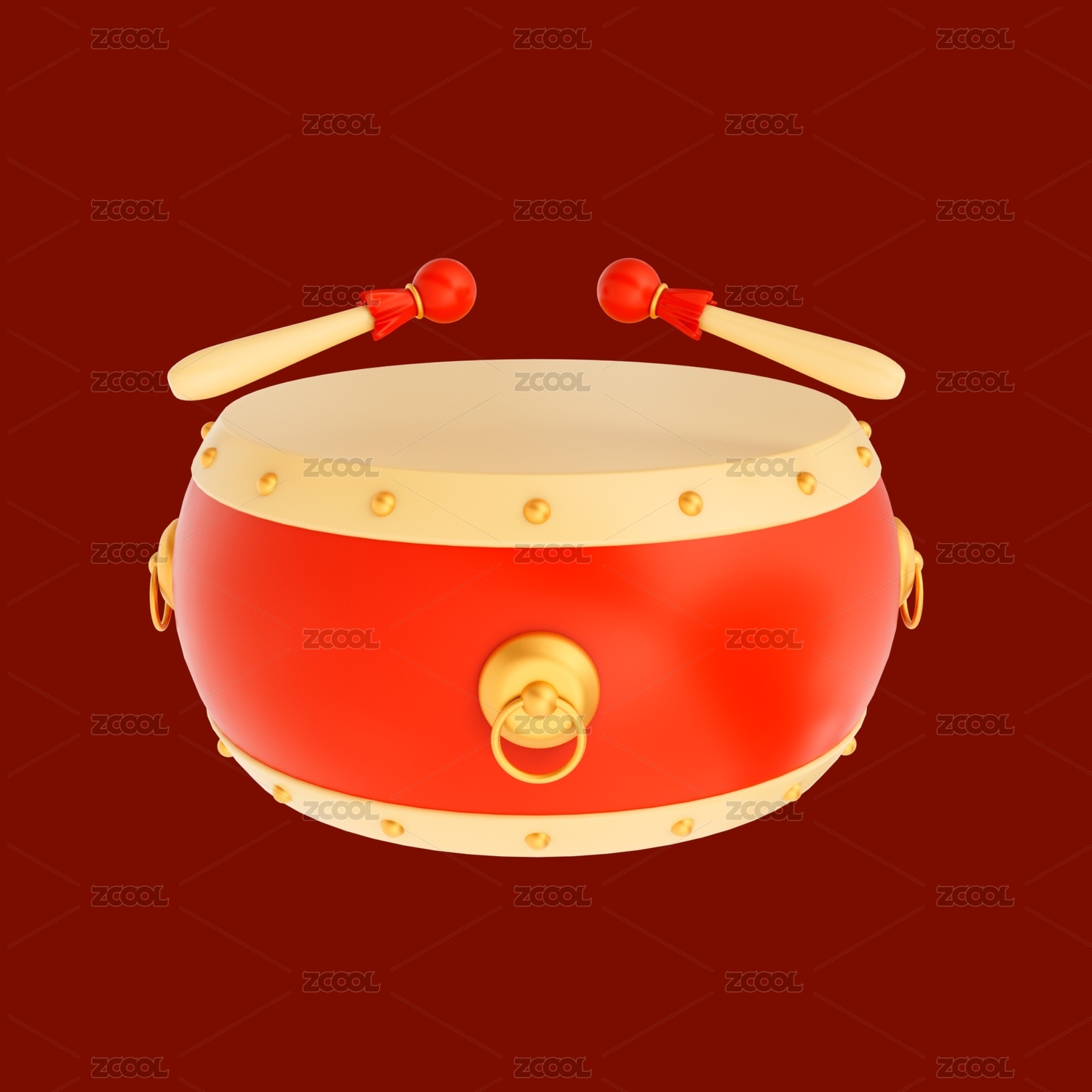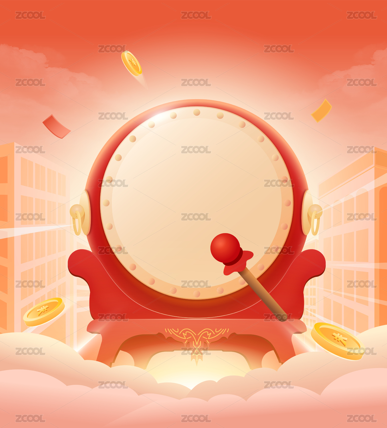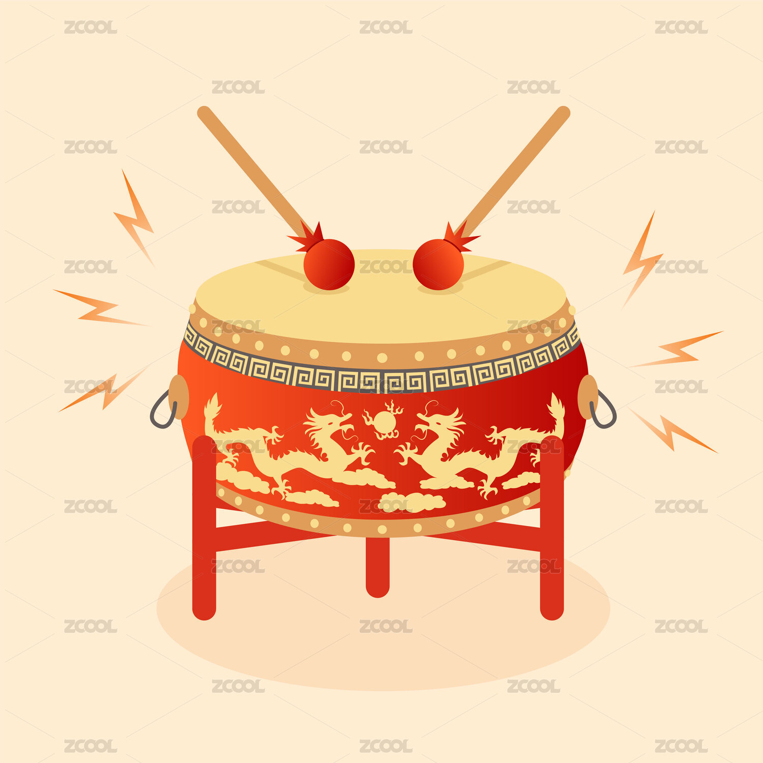 卡通手繪中國(guó)風(fēng)紅色大鼓插畫(huà)