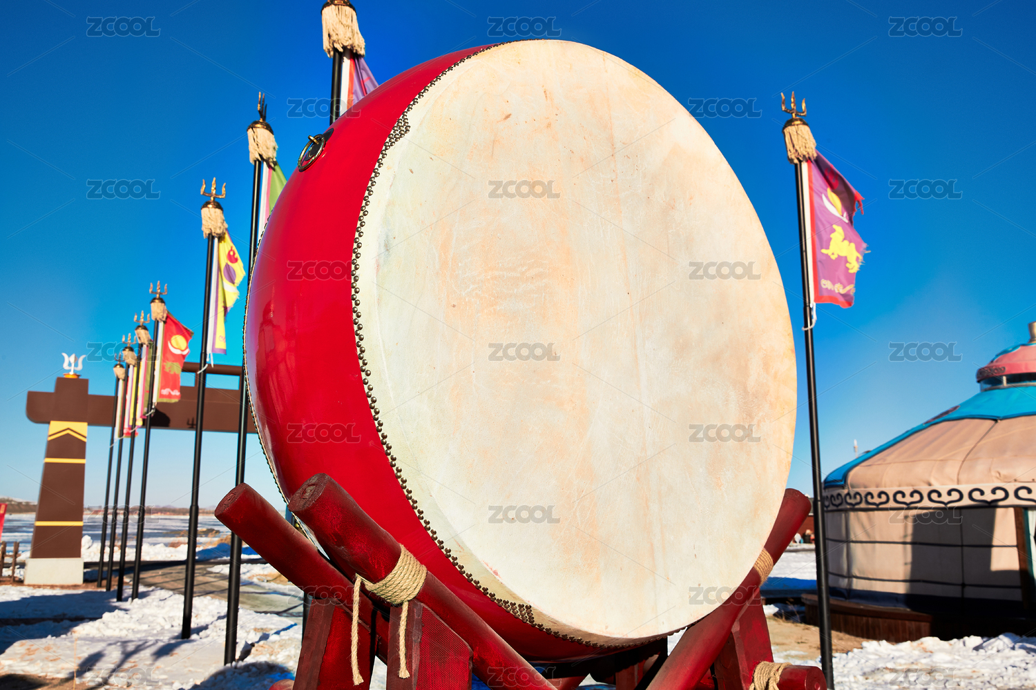 傳統(tǒng)年畫(huà)牛皮鼓龍鼓大鼓