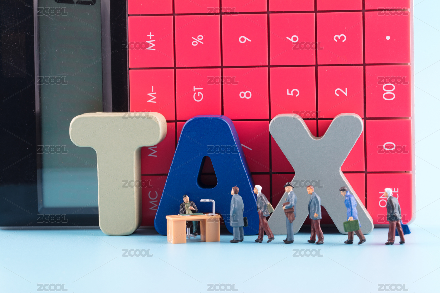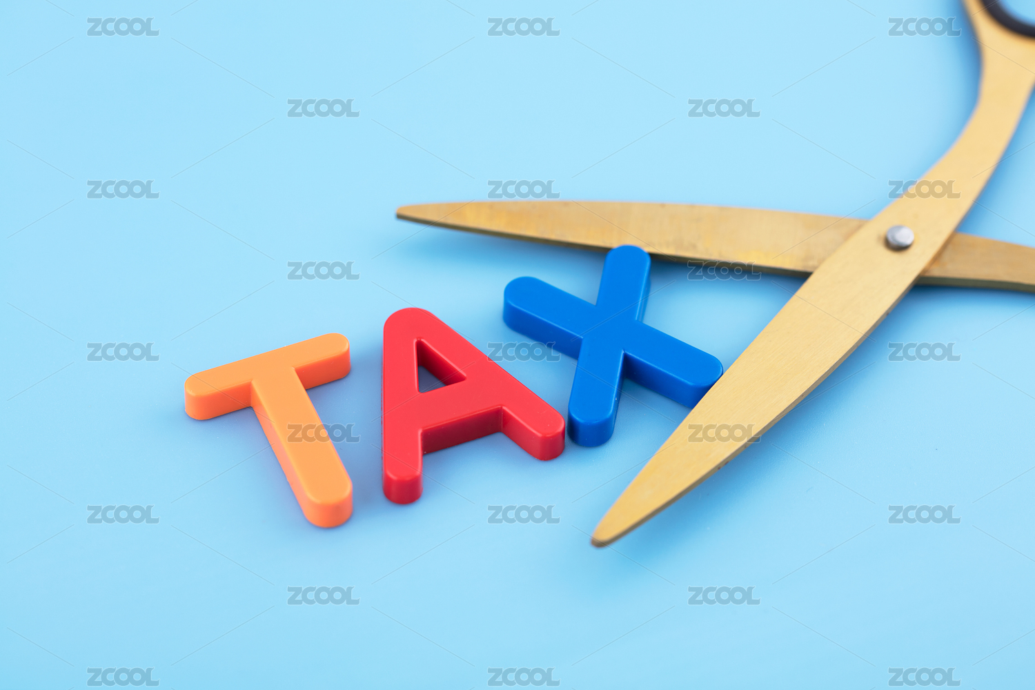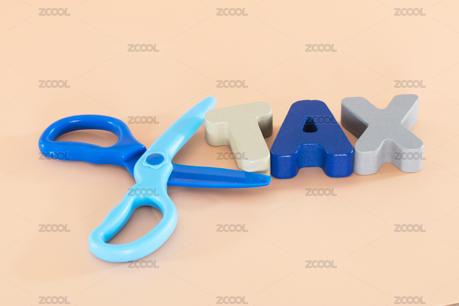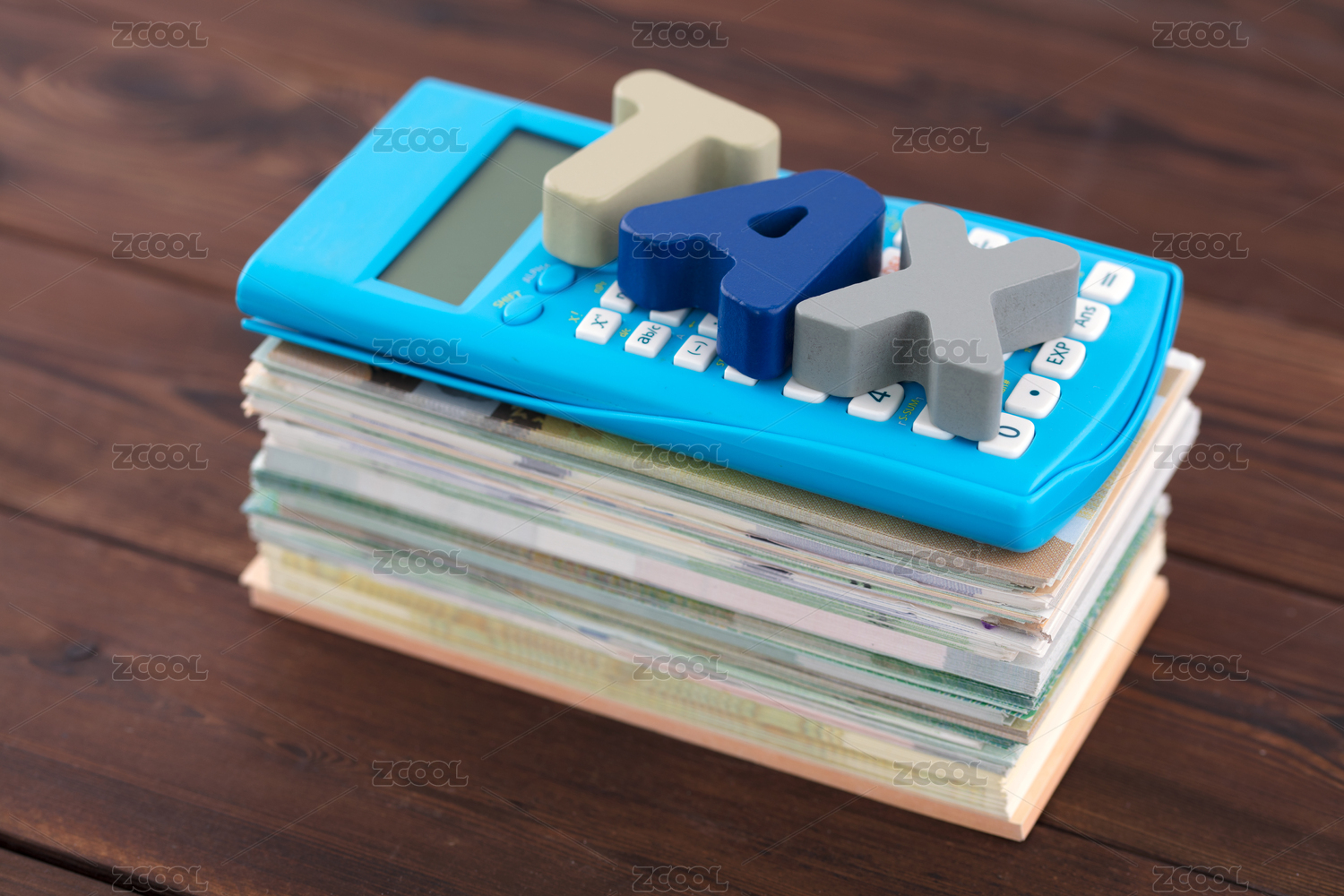 一沓各式各樣的鈔票和立體字母組成的TAX