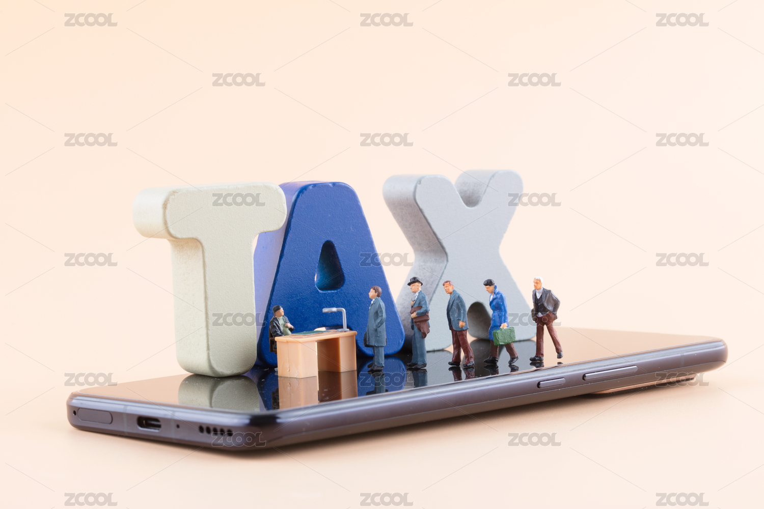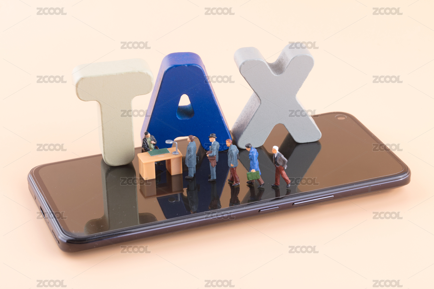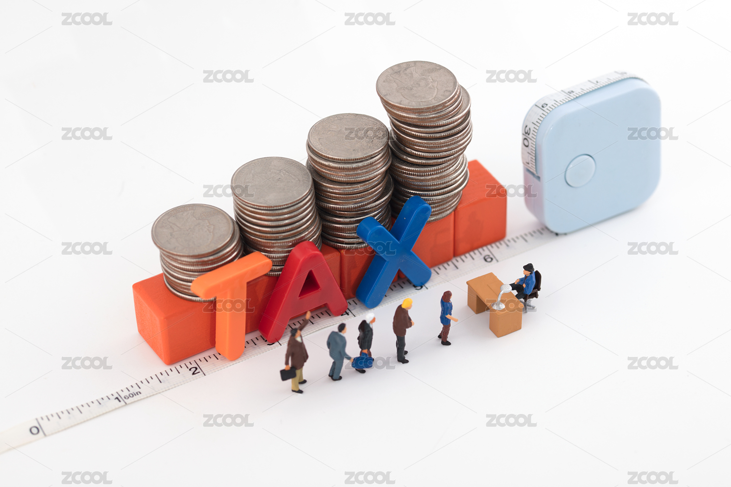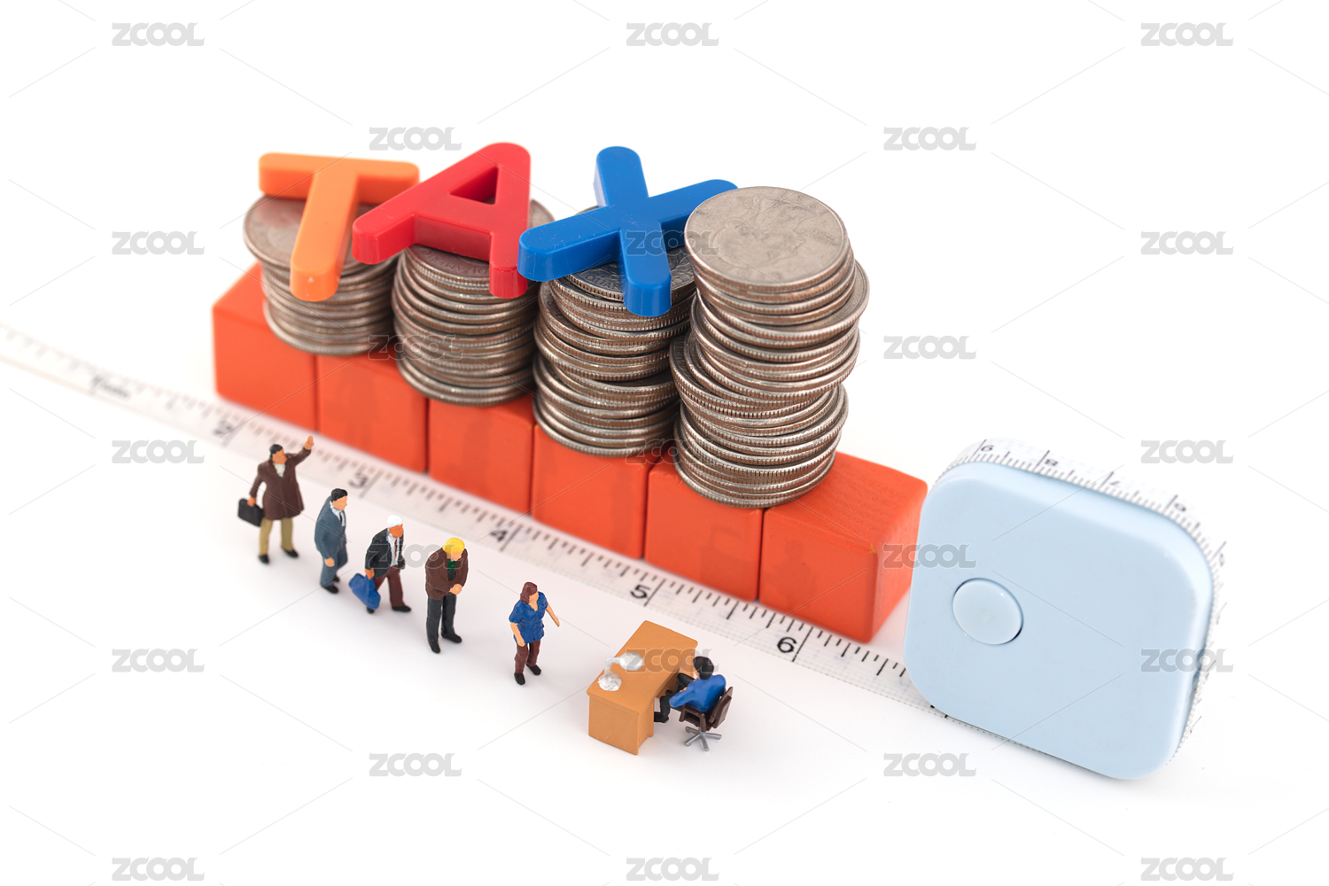 一沓各式各樣的鈔票和立體字母組成的TAX