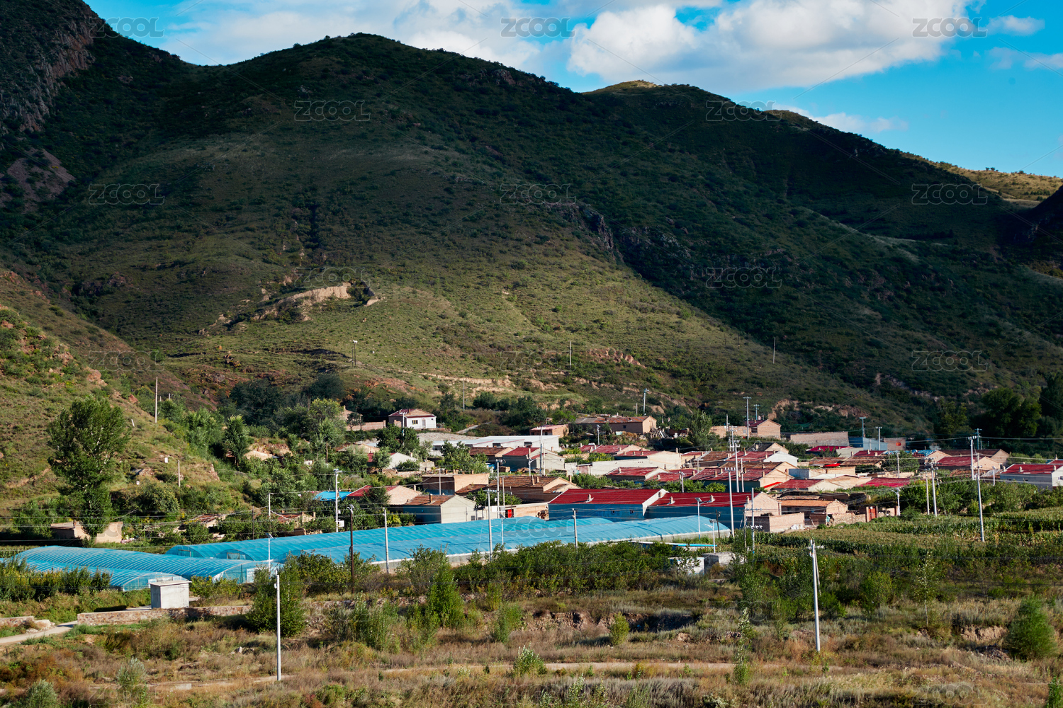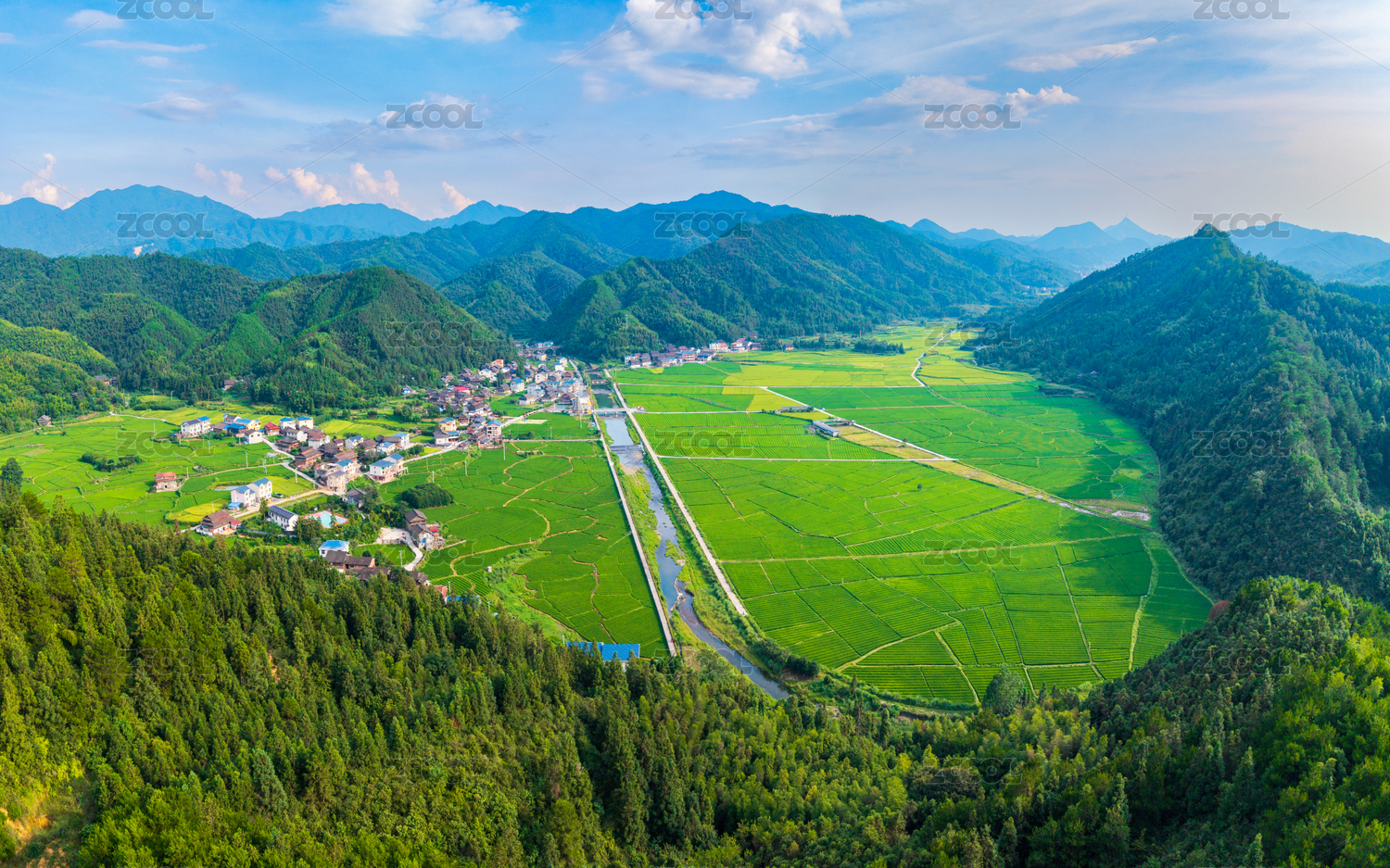 山巒與藍(lán)天下的寧靜村莊