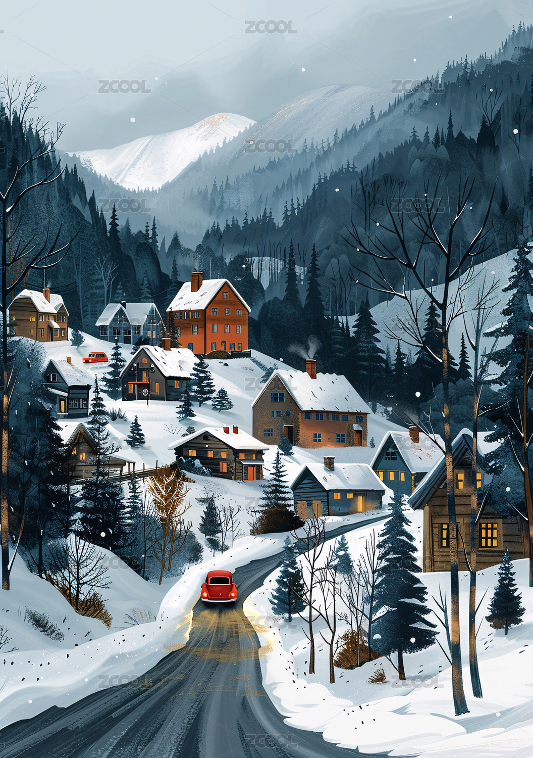 雪景風(fēng)景小村莊