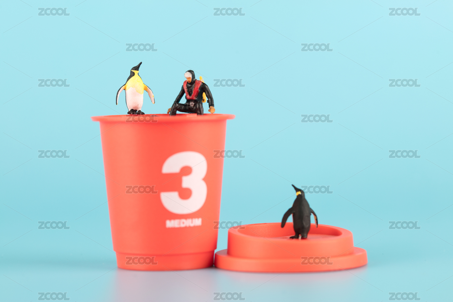 微縮世界里企鵝和蛙人和一杯咖啡
