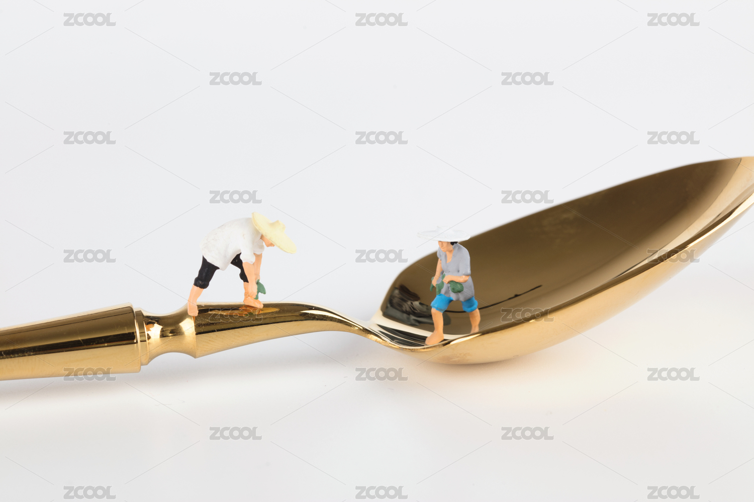 金勺子上忙碌的農(nóng)民人偶模型