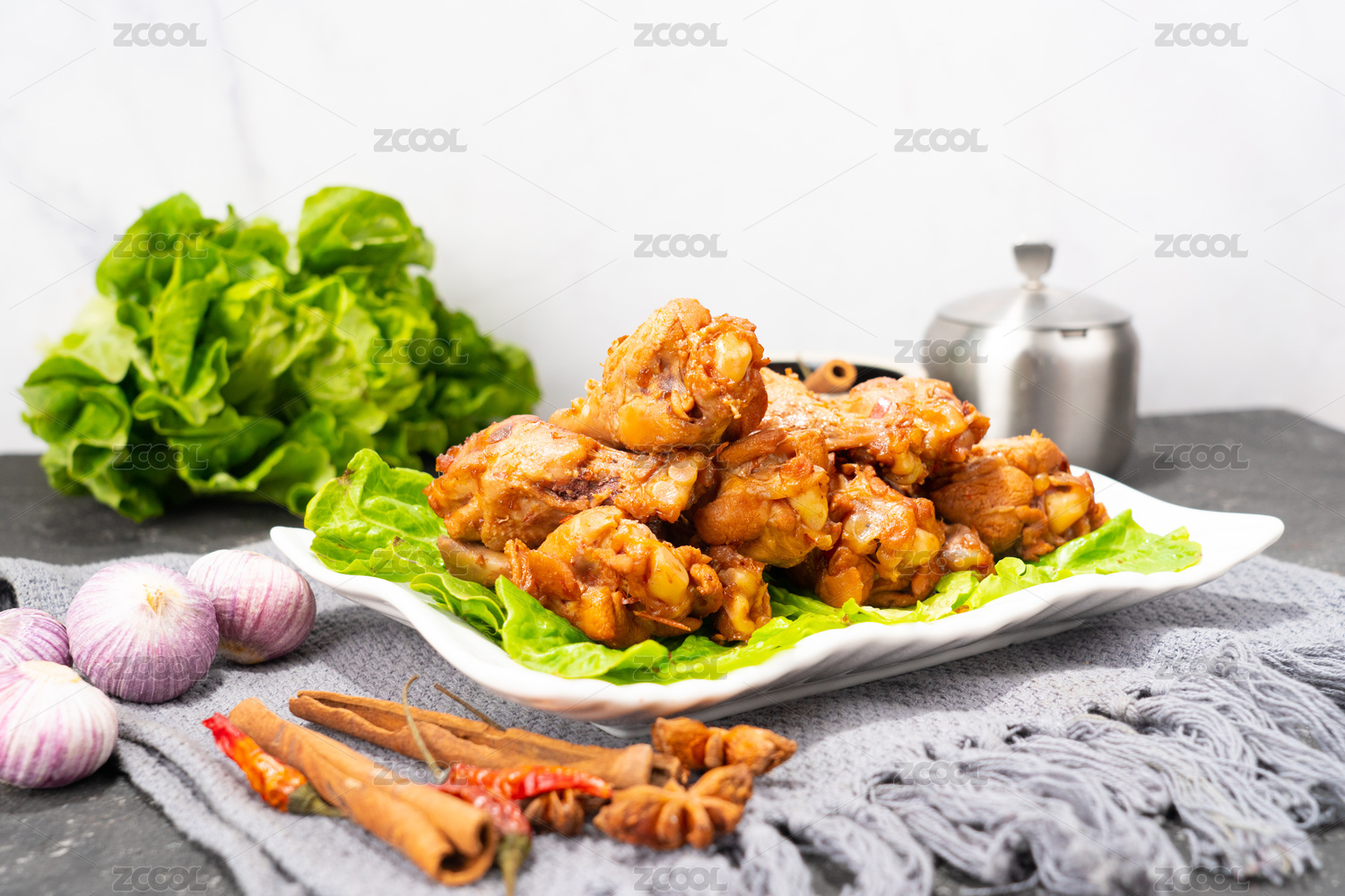 黑色背景盤(pán)中雞翅中
