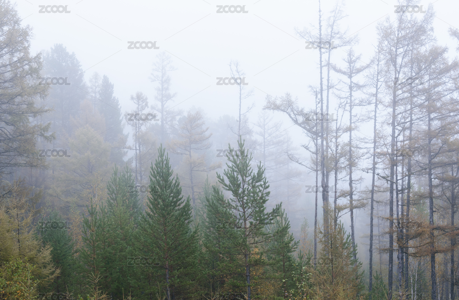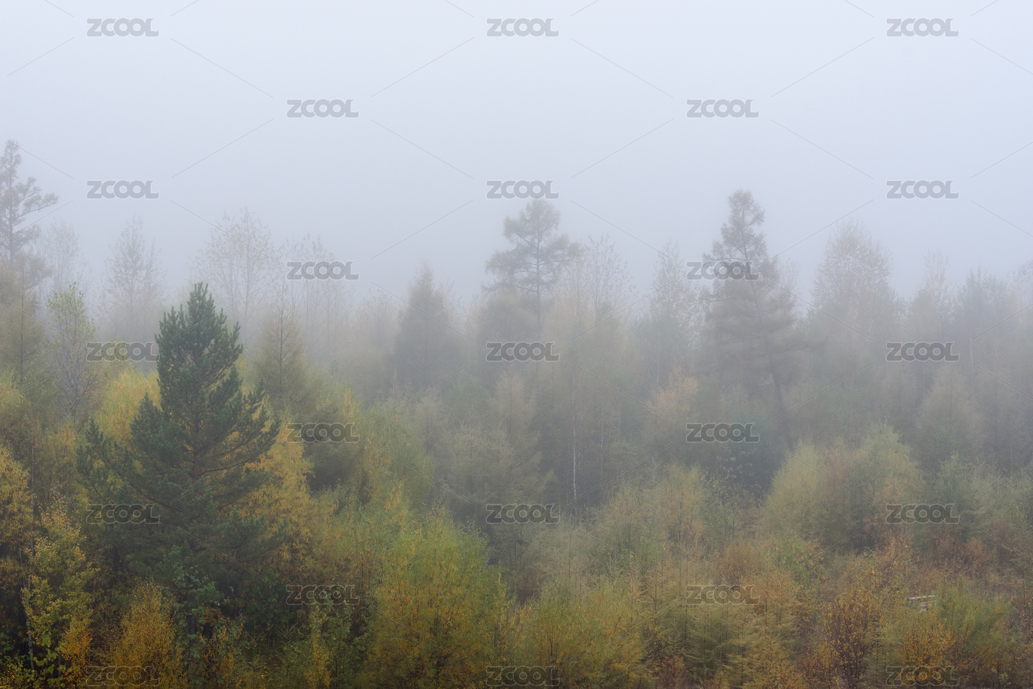 黑龍江省漠河市大興安嶺秋季晨霧風(fēng)光