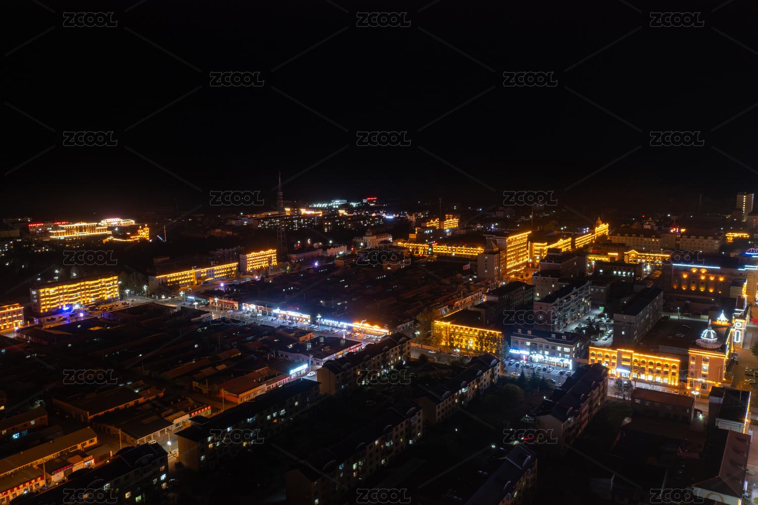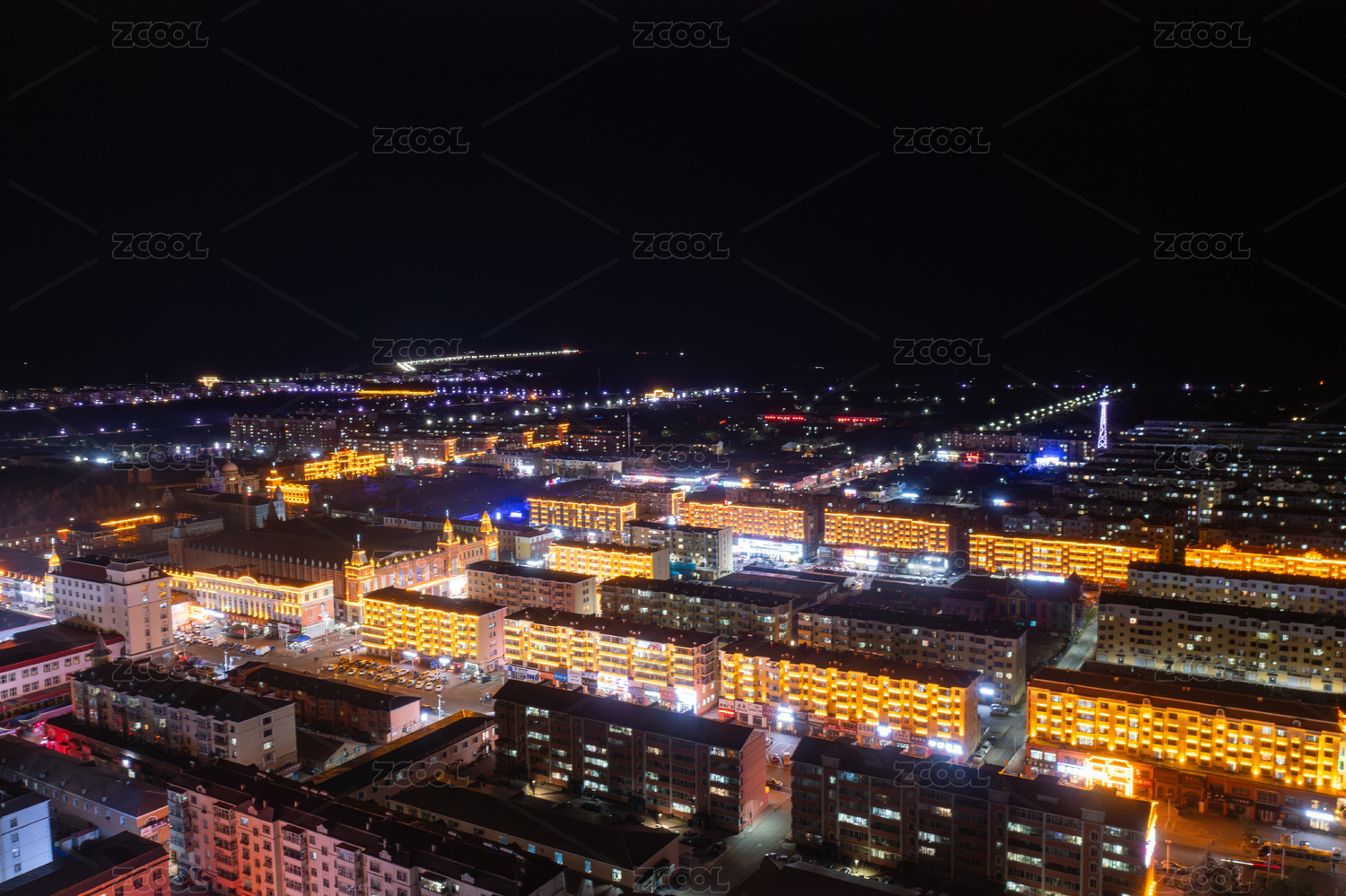 黑龍江省大興安嶺漠河市夜景航拍