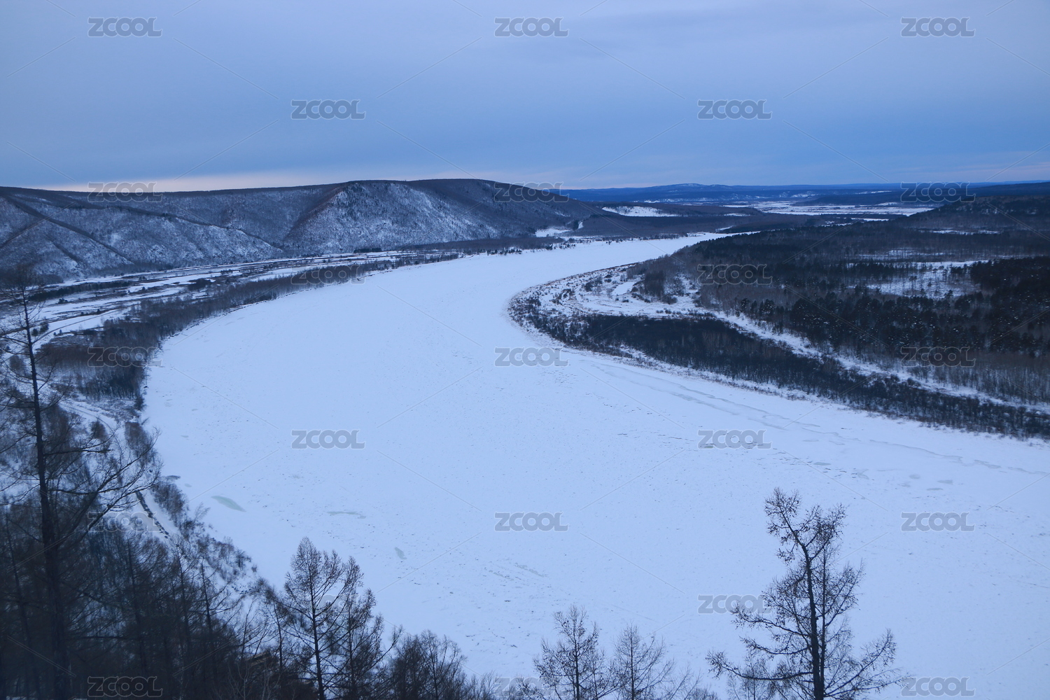 冬季黑龍江漠河市北極村凍結(jié)的中俄界河自然
