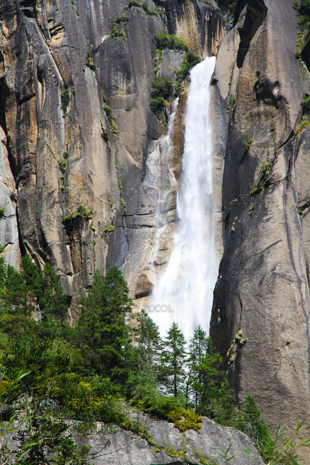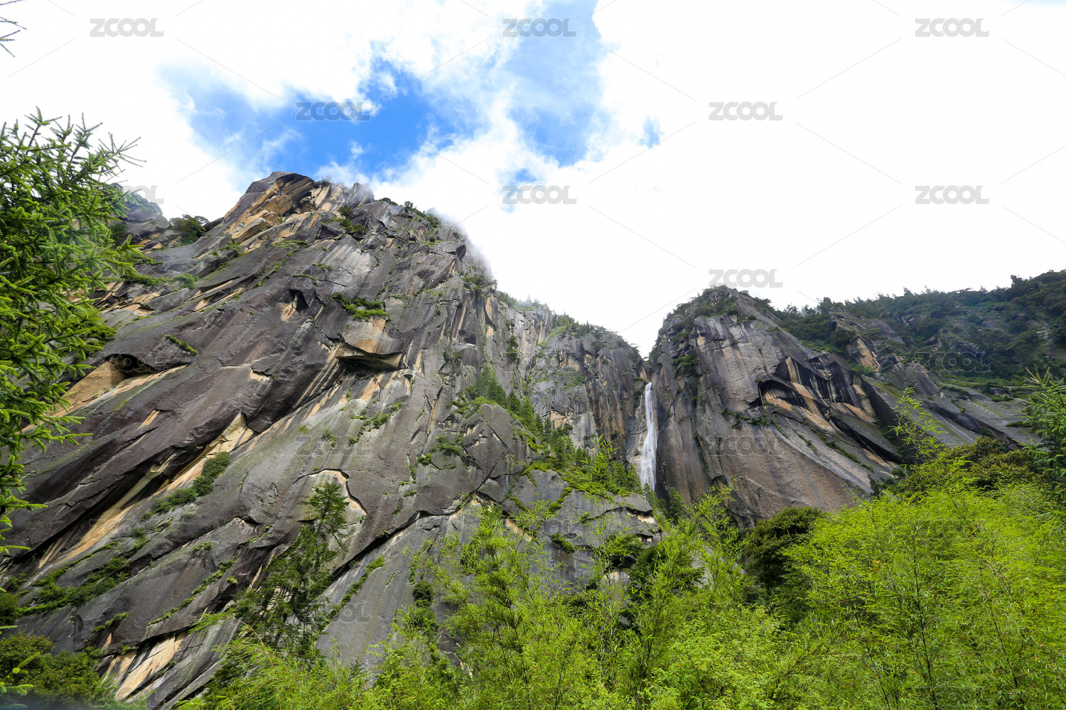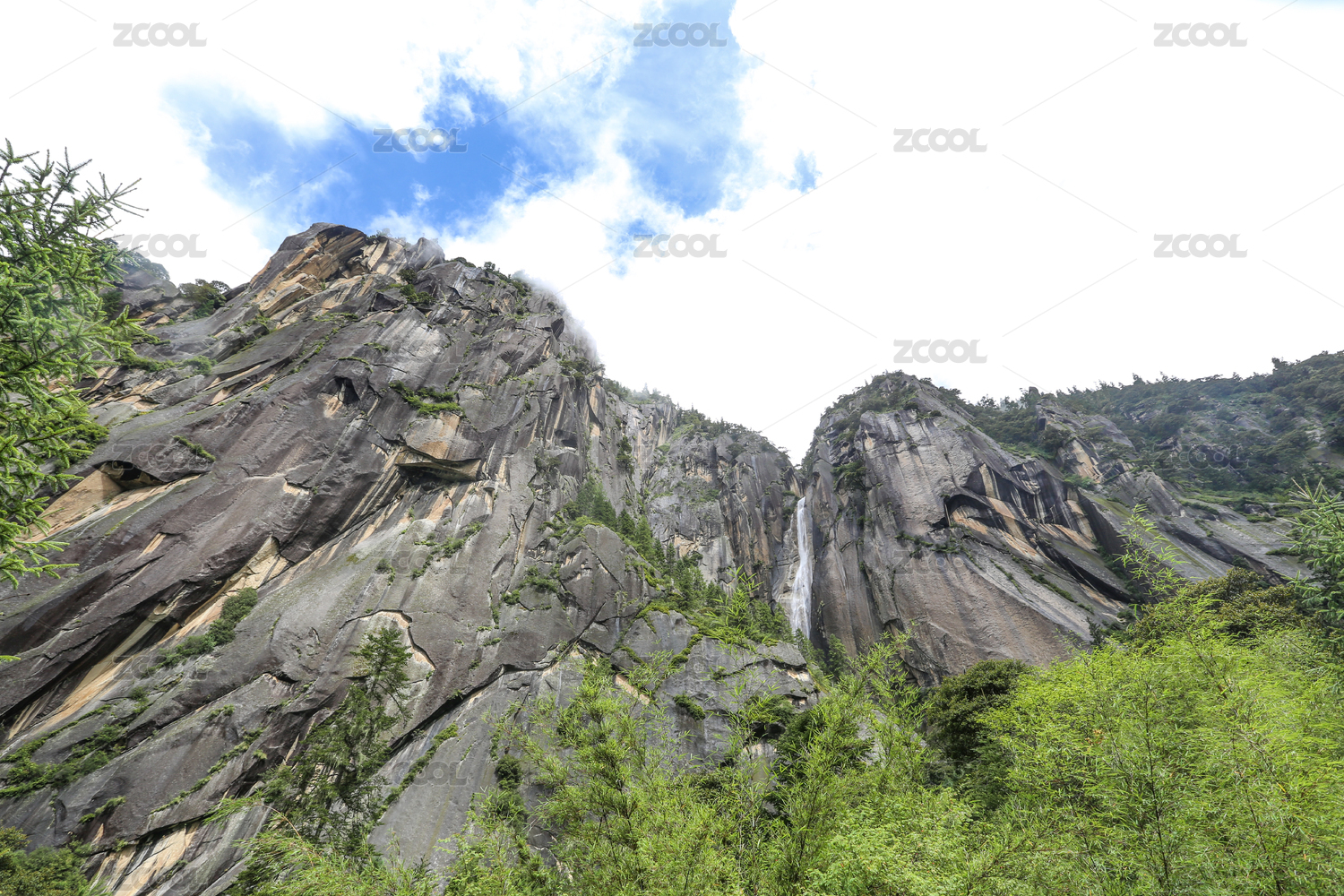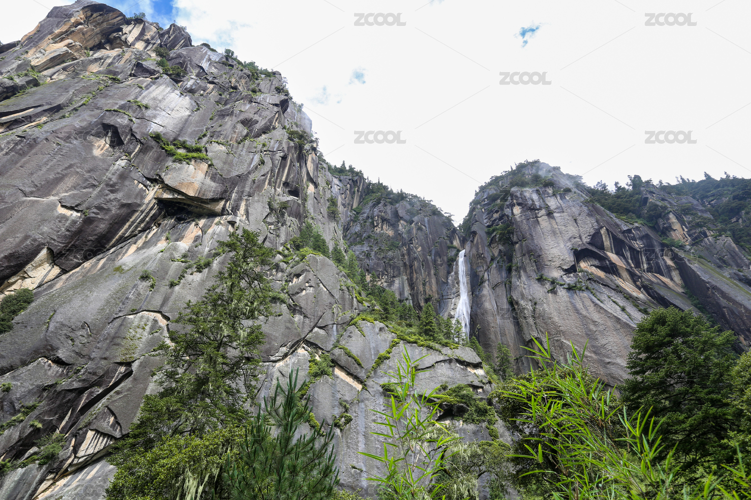 中國西藏林芝卡定溝天佛瀑布旁邊的巖壁風光