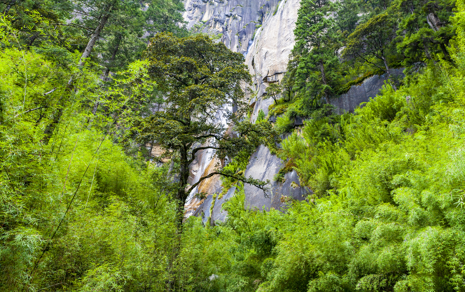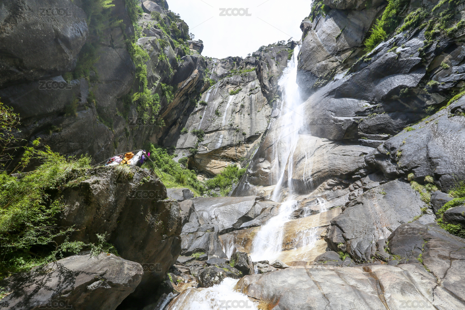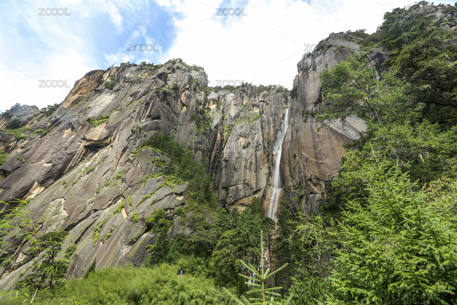 中國西藏林芝卡定溝天佛瀑布旁邊的巖壁風光