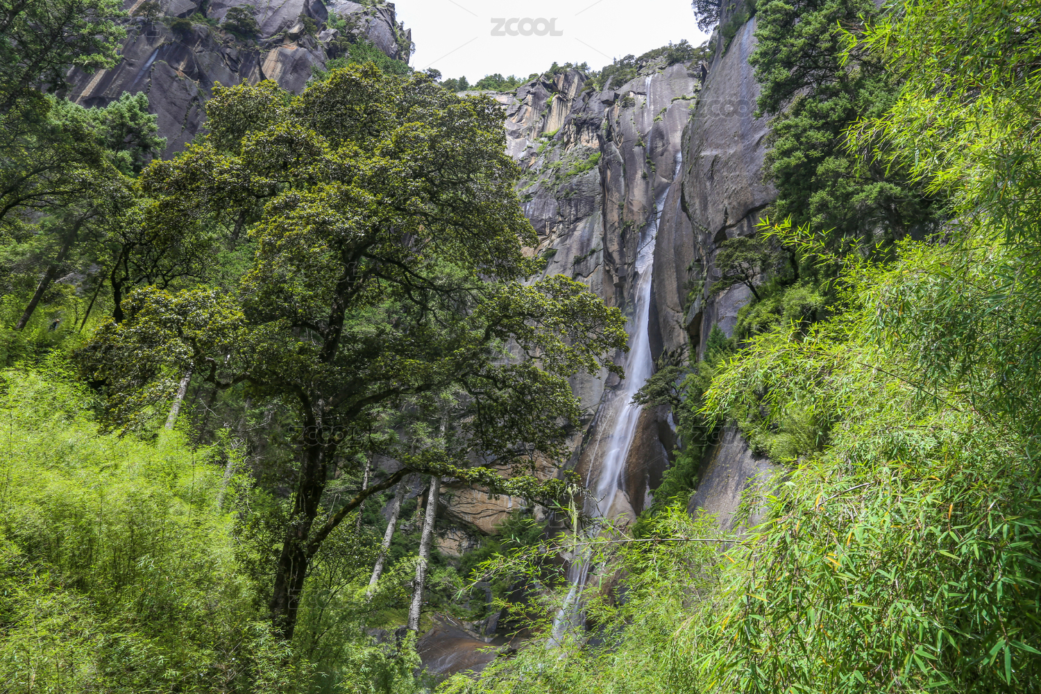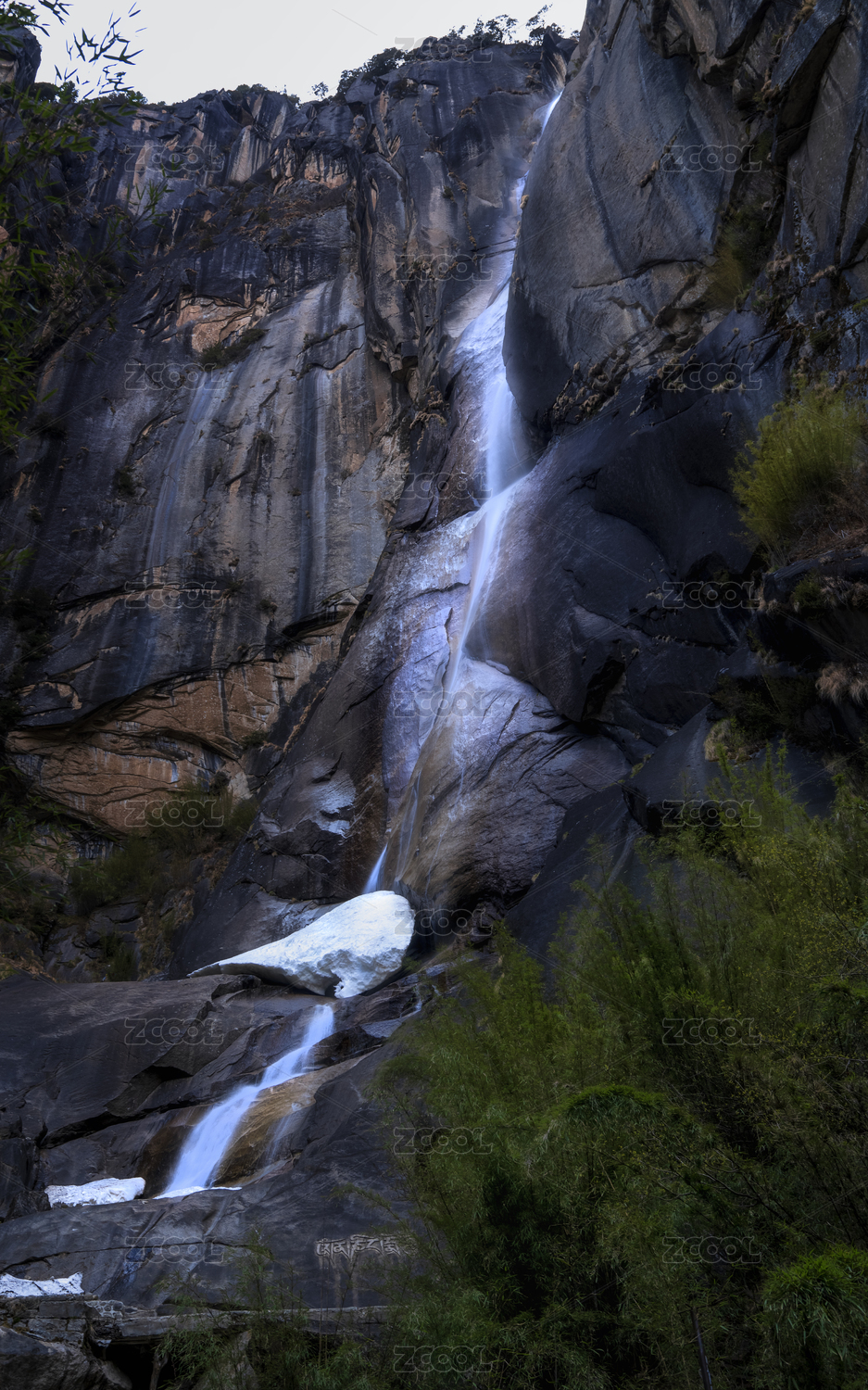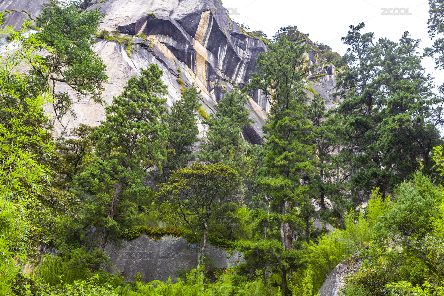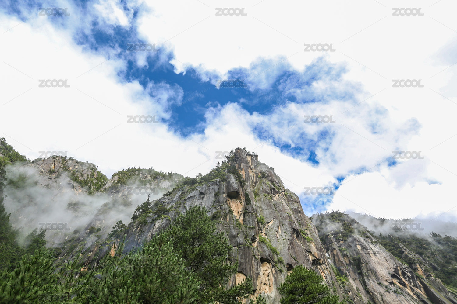 中國西藏林芝卡定溝天佛瀑布旁邊的巖壁風光
