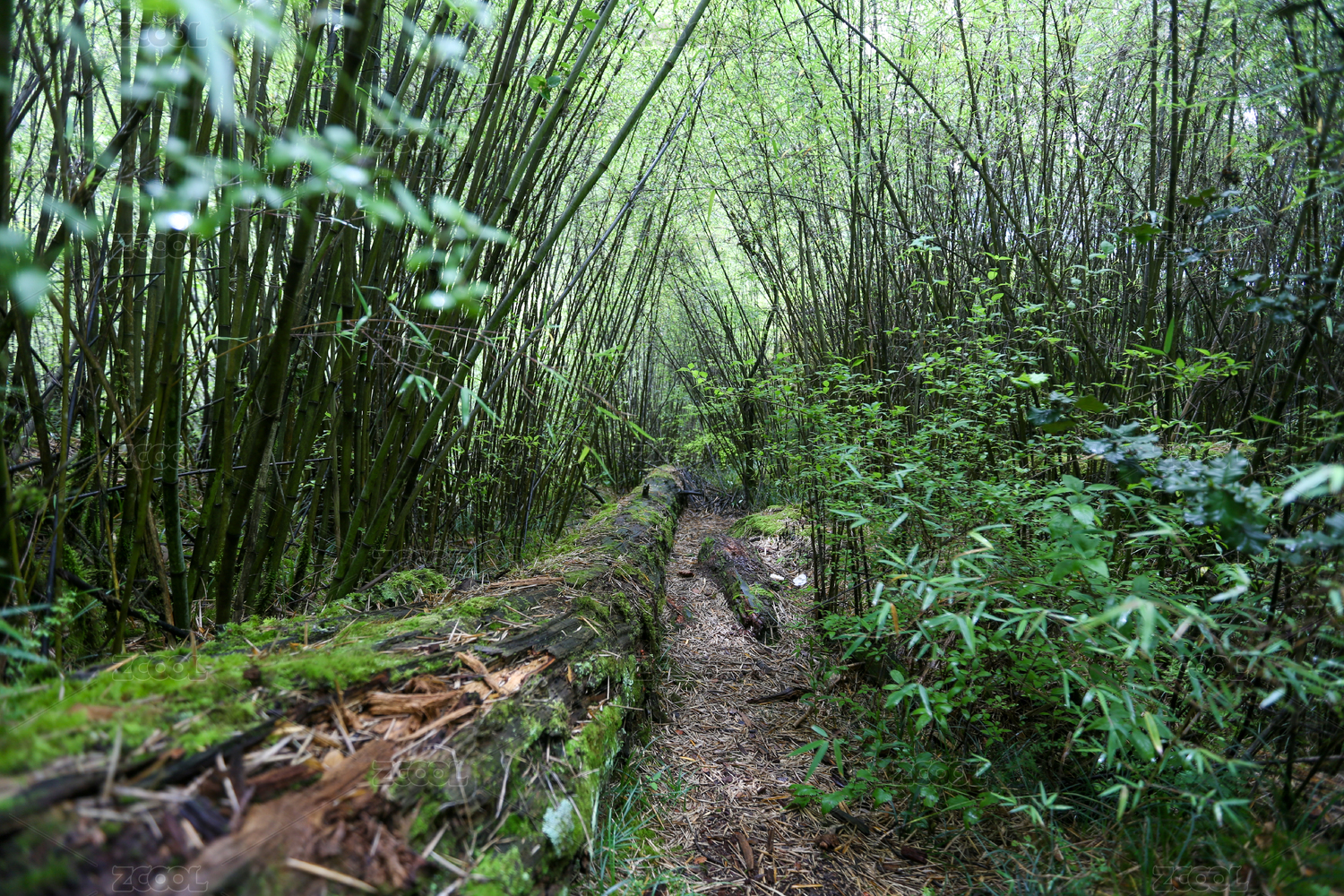 中國西藏卡定溝 潮濕氣候的竹林小路