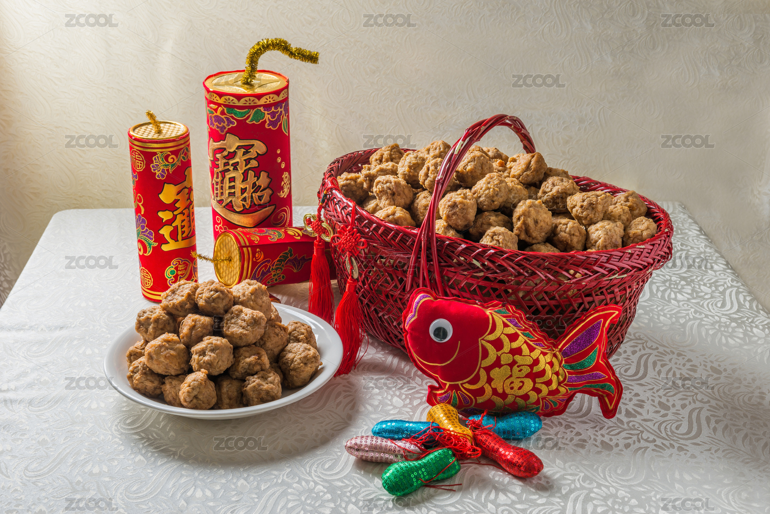 白背景的油炸肉丸紅燒獅子頭四喜丸子