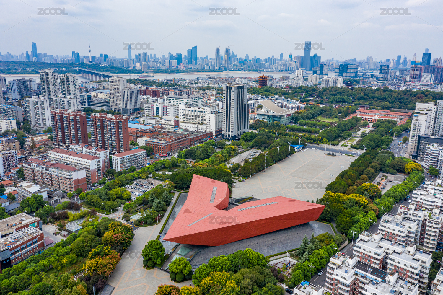 航拍湖北武漢首義廣場武漢辛亥革命博物館