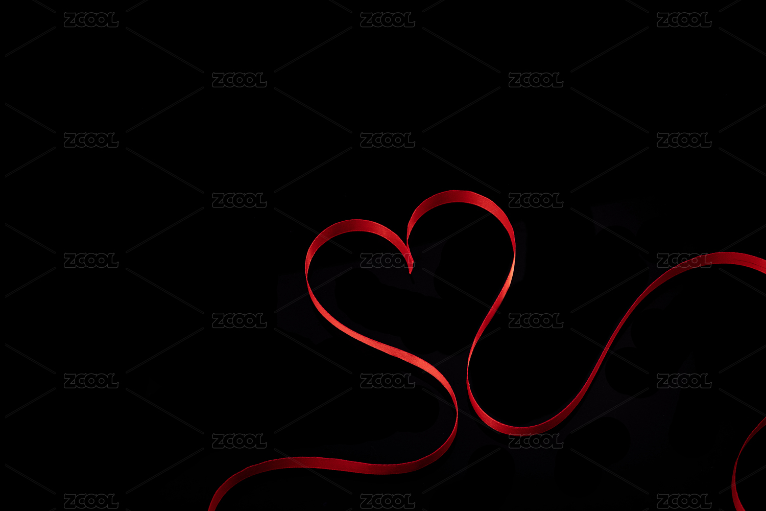 愛(ài)心造型紅絲帶亮黑色背景