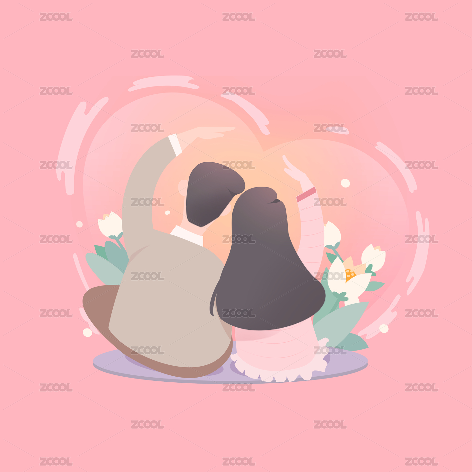 一對(duì)情侶擺愛(ài)心造型