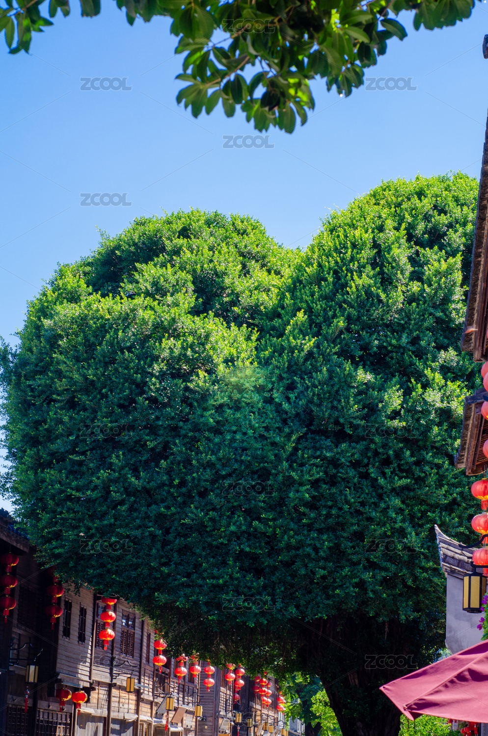 中國(guó)福建福州三坊七巷愛(ài)心造型的大榕樹(shù)