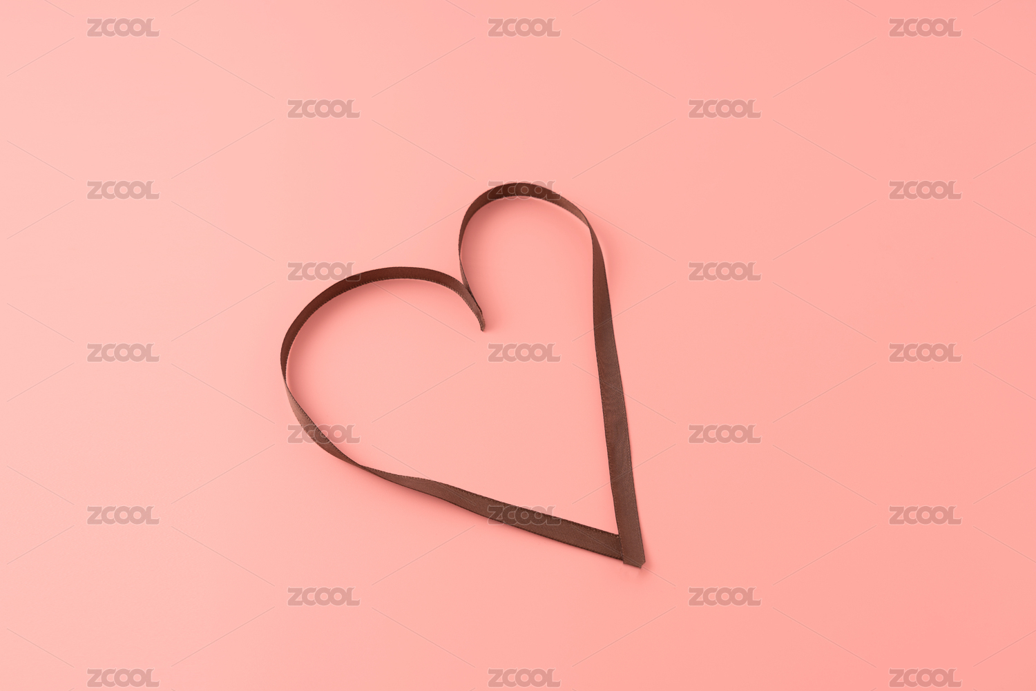 愛(ài)心造型的咖啡色絲帶,粉色背景