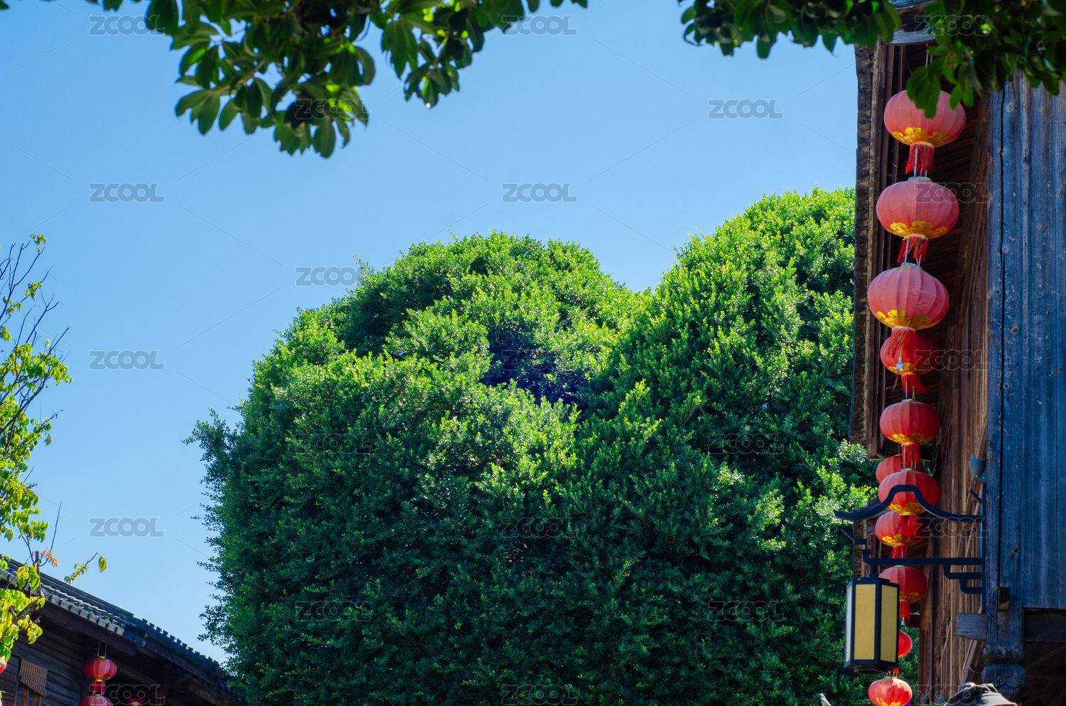 中國(guó)福建福州三坊七巷的愛(ài)心造型的大榕樹(shù)