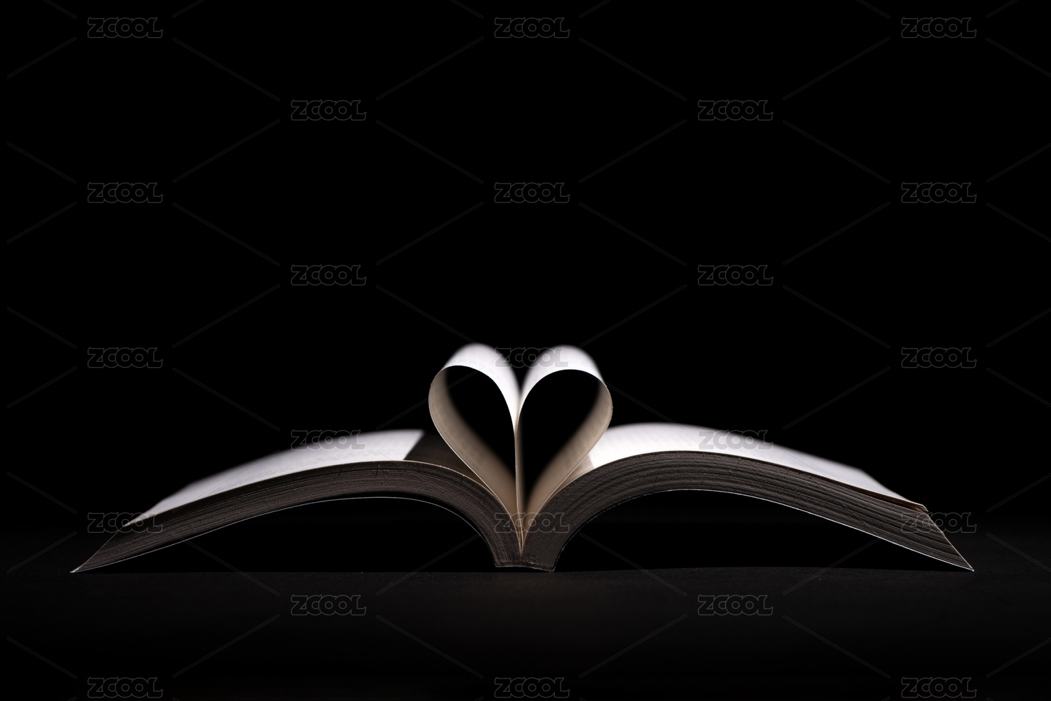 黑色背景下打開(kāi)的呈愛(ài)心造型的書(shū)本