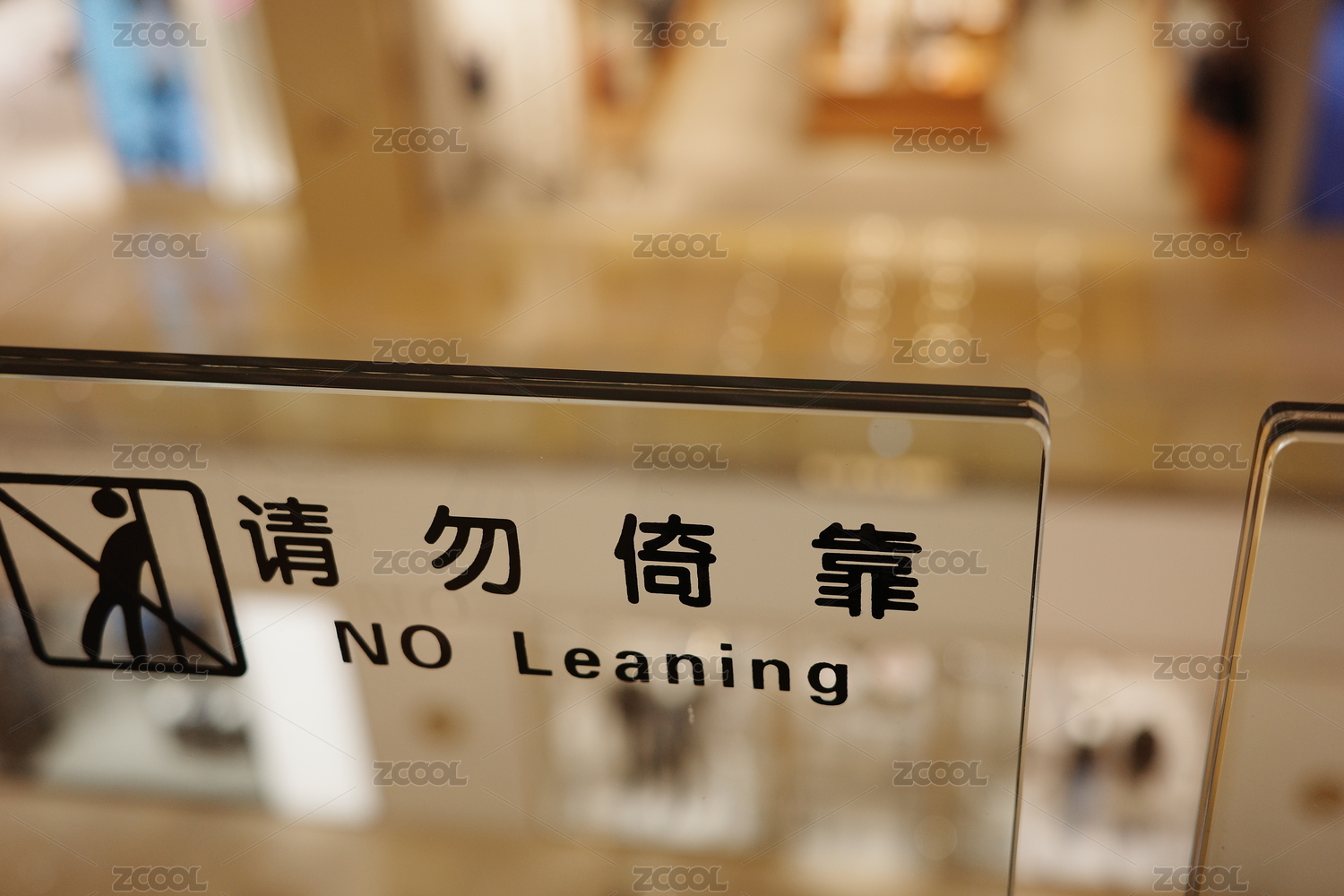 大型商場(chǎng)的護(hù)欄上請(qǐng)勿倚靠的警告標(biāo)識(shí)