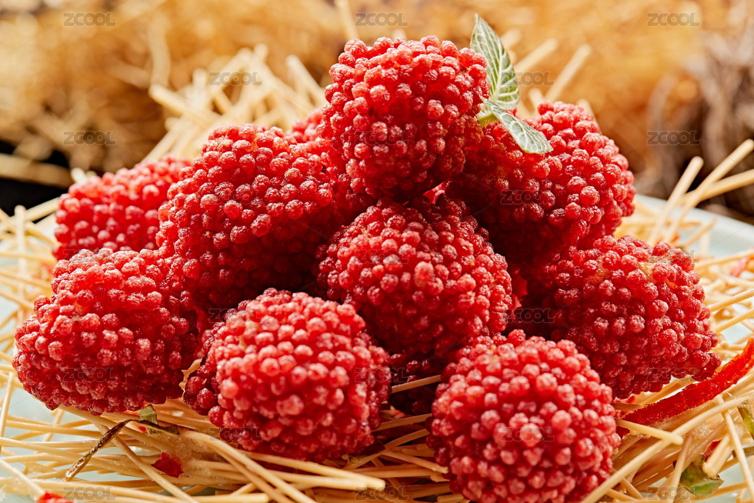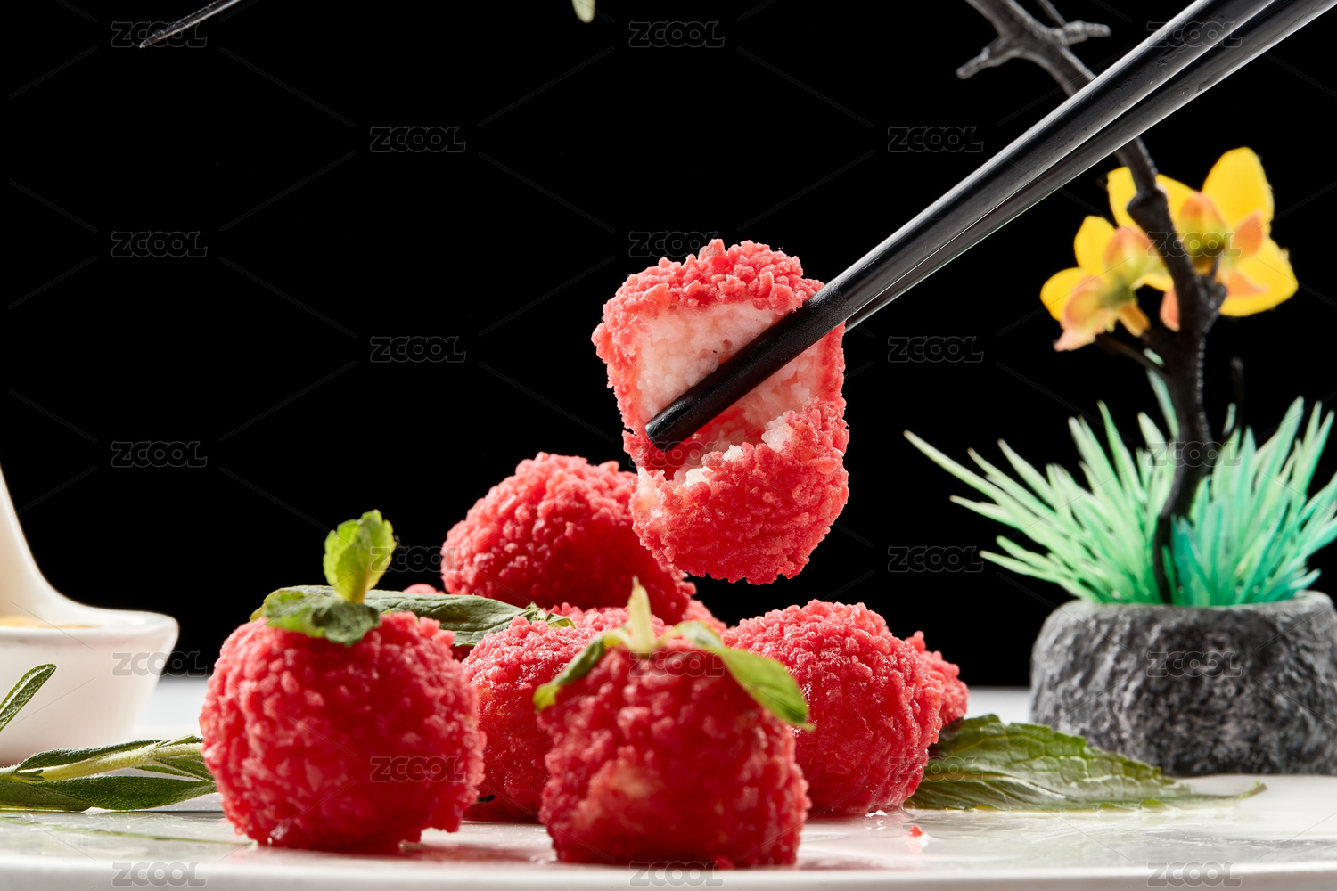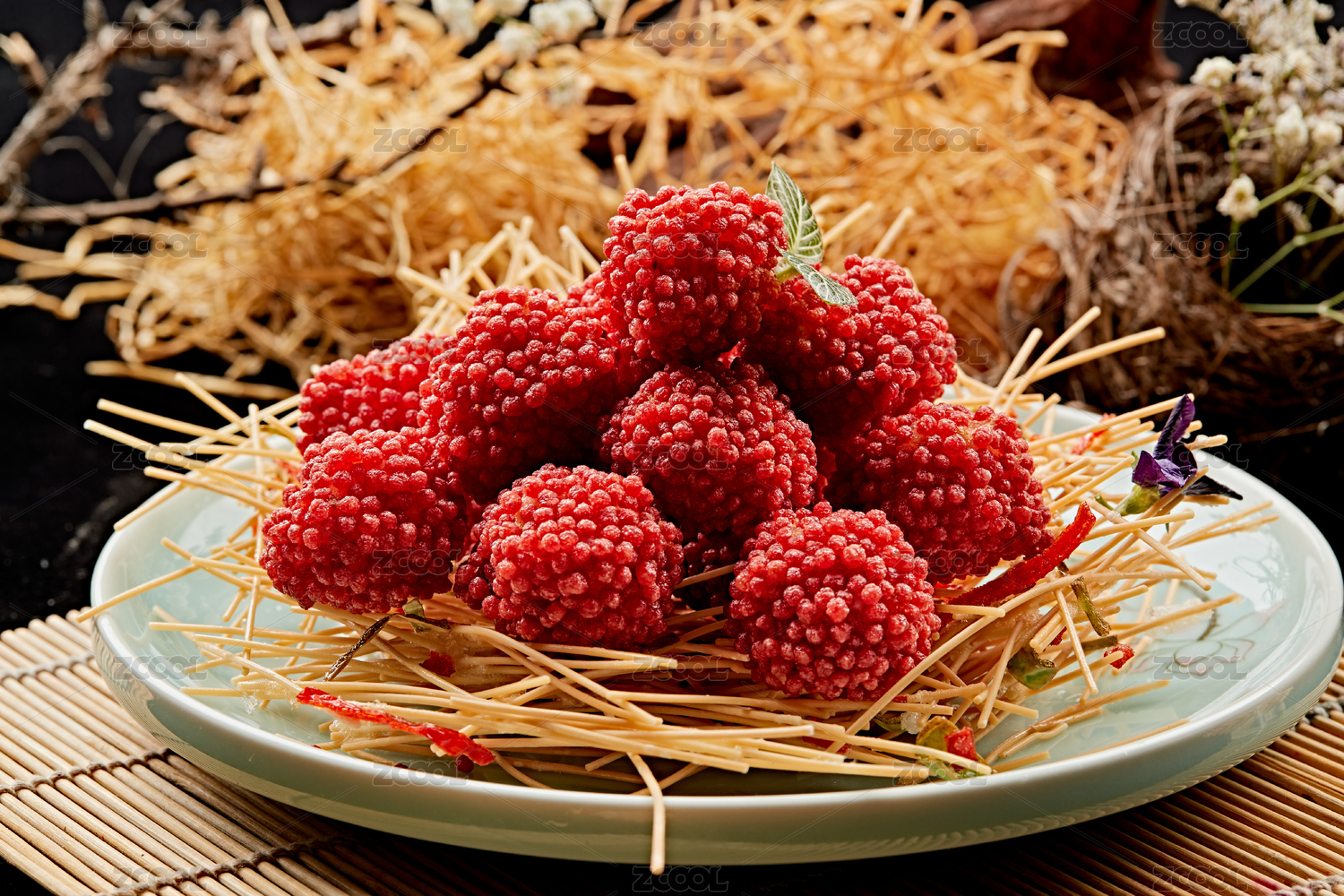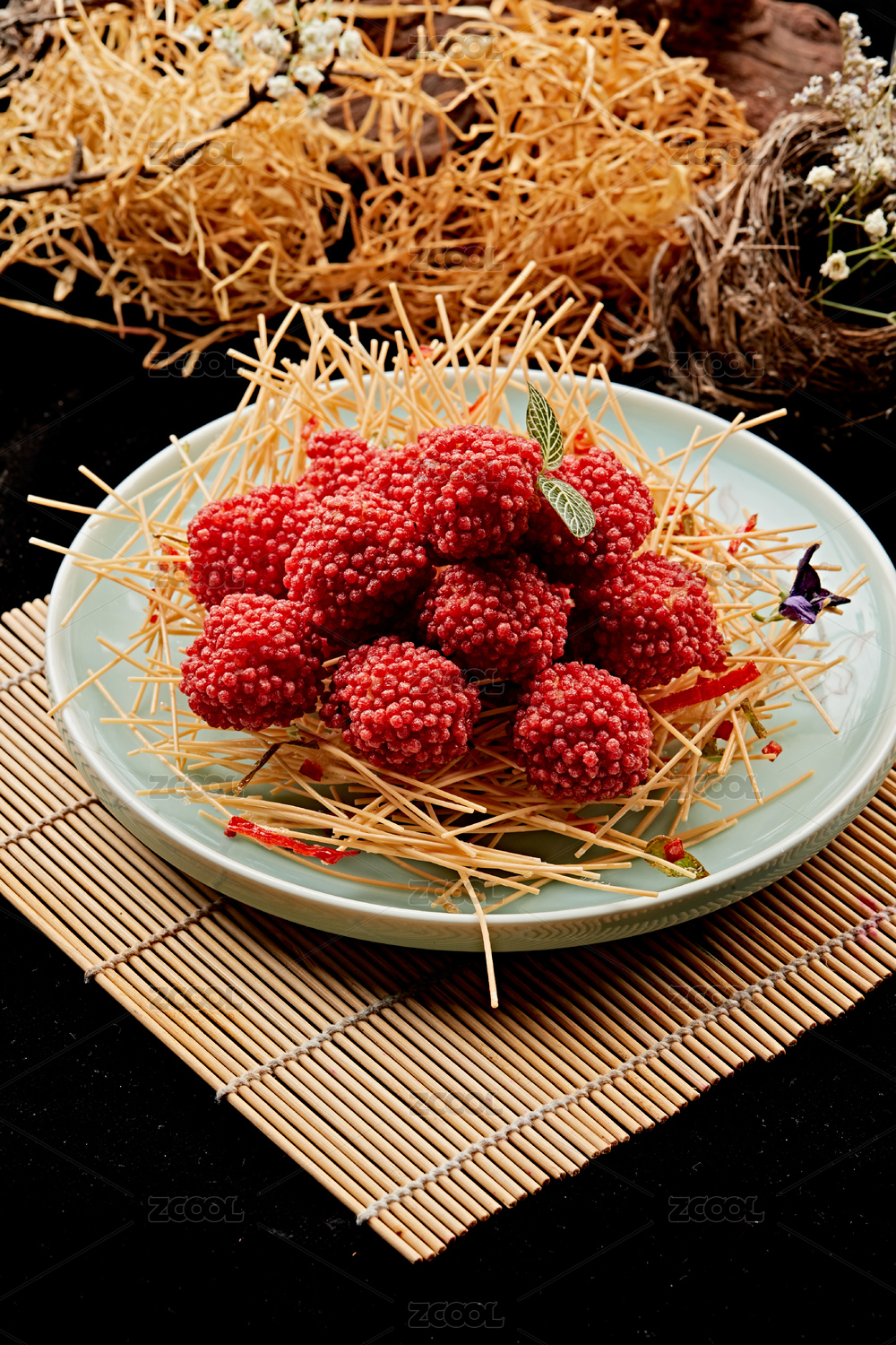 白瓷盤(pán)裝的精美擺盤(pán)的荔枝大蝦球