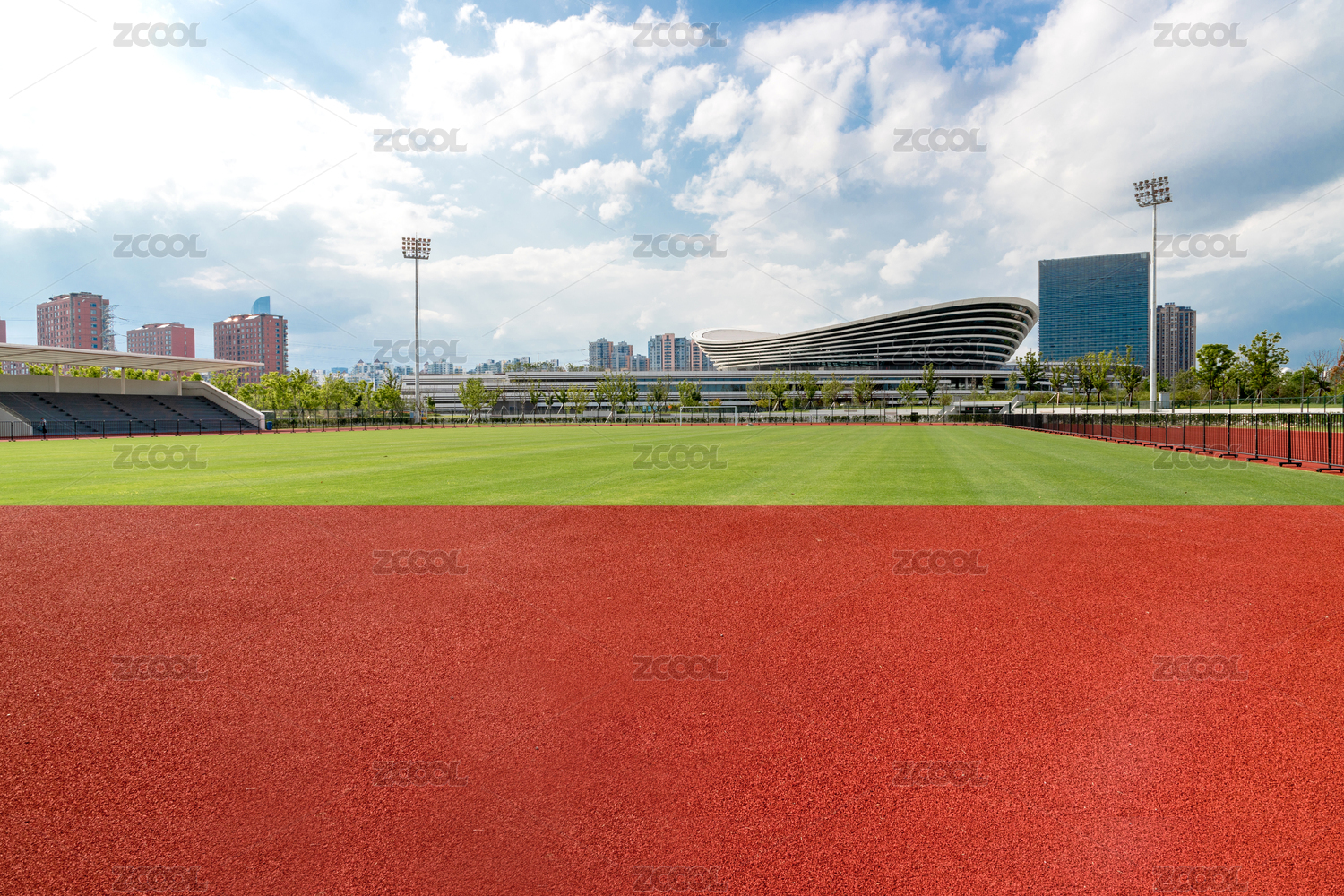 藍(lán)天下體育場橡膠跑道和建筑景觀