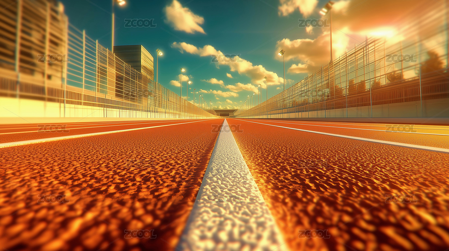 運(yùn)動(dòng)場橡膠跑道和大自然背景創(chuàng)意合成