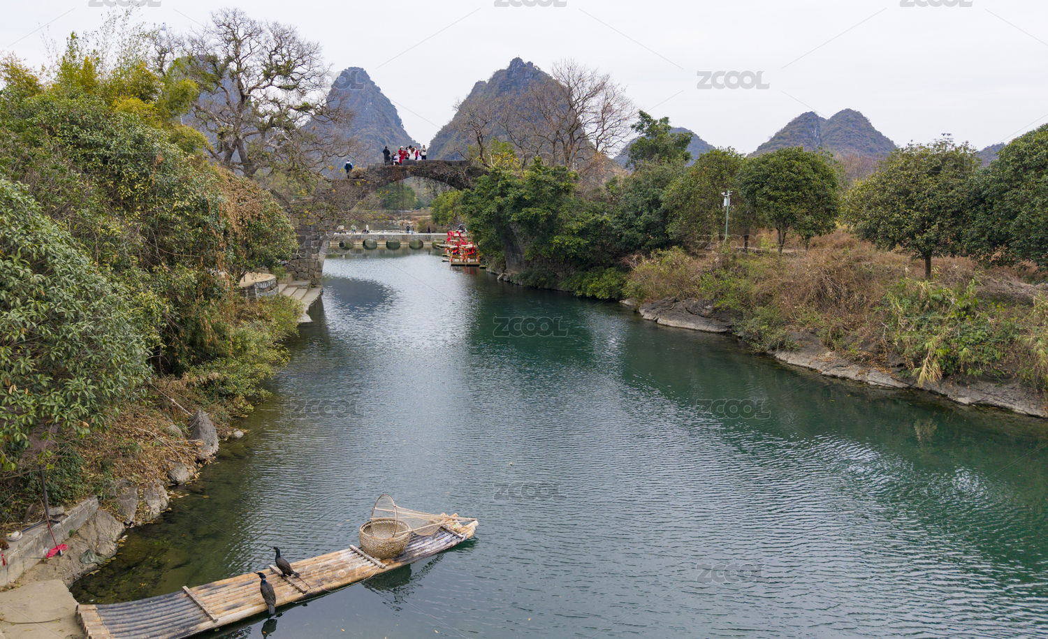 廣西桂林陽朔遇龍河風景區(qū)竹筏漂流