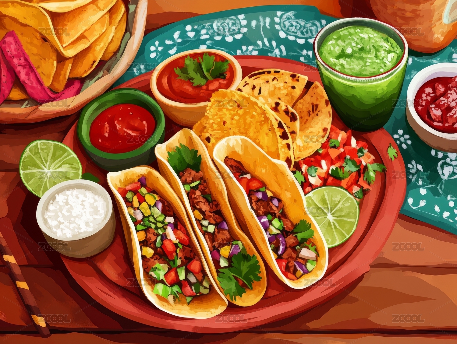 色彩斑斕的墨西哥美食拼盤