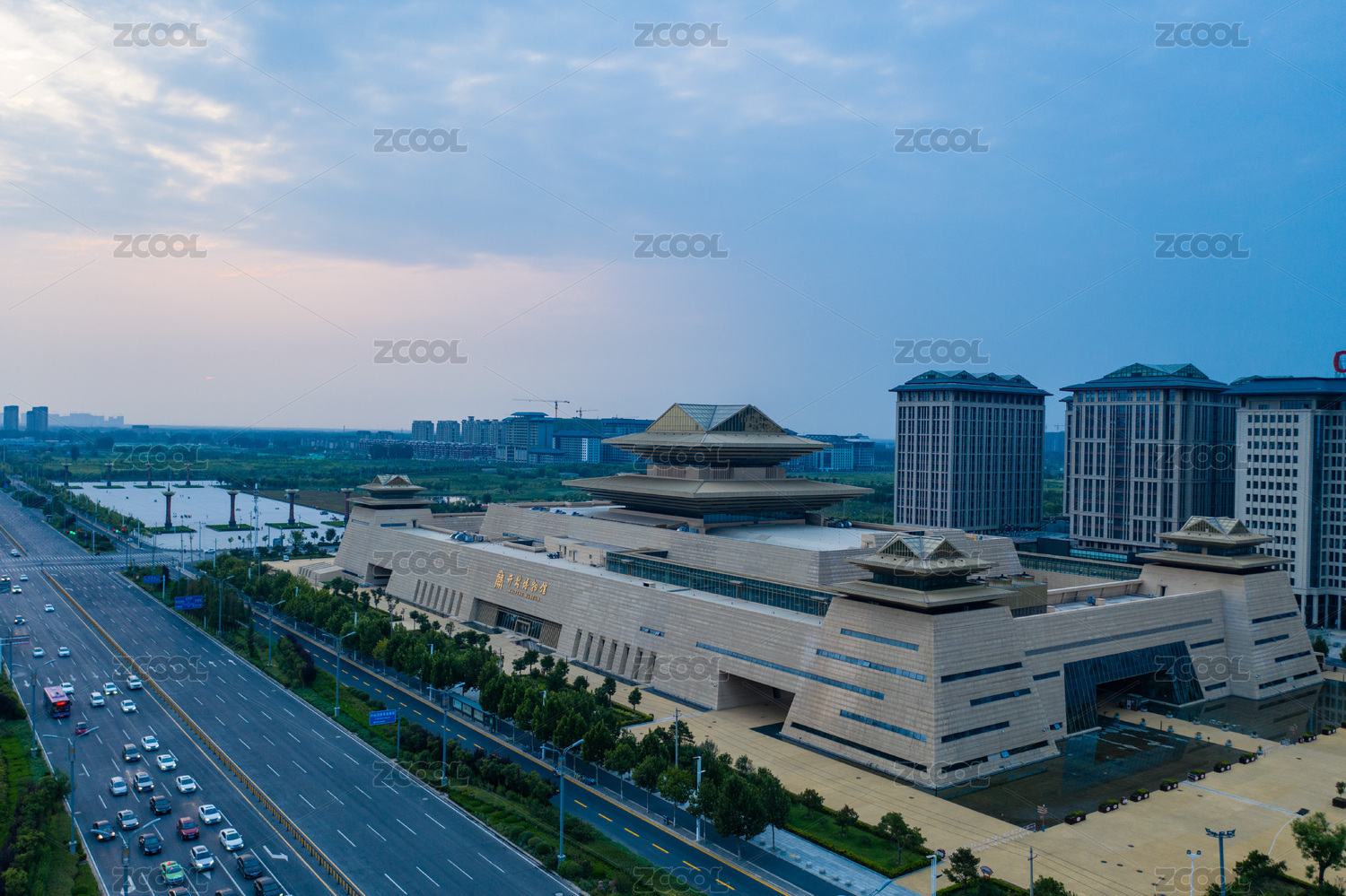 航拍河南開(kāi)封市博物館鄭開(kāi)大道新館宋代風(fēng)格