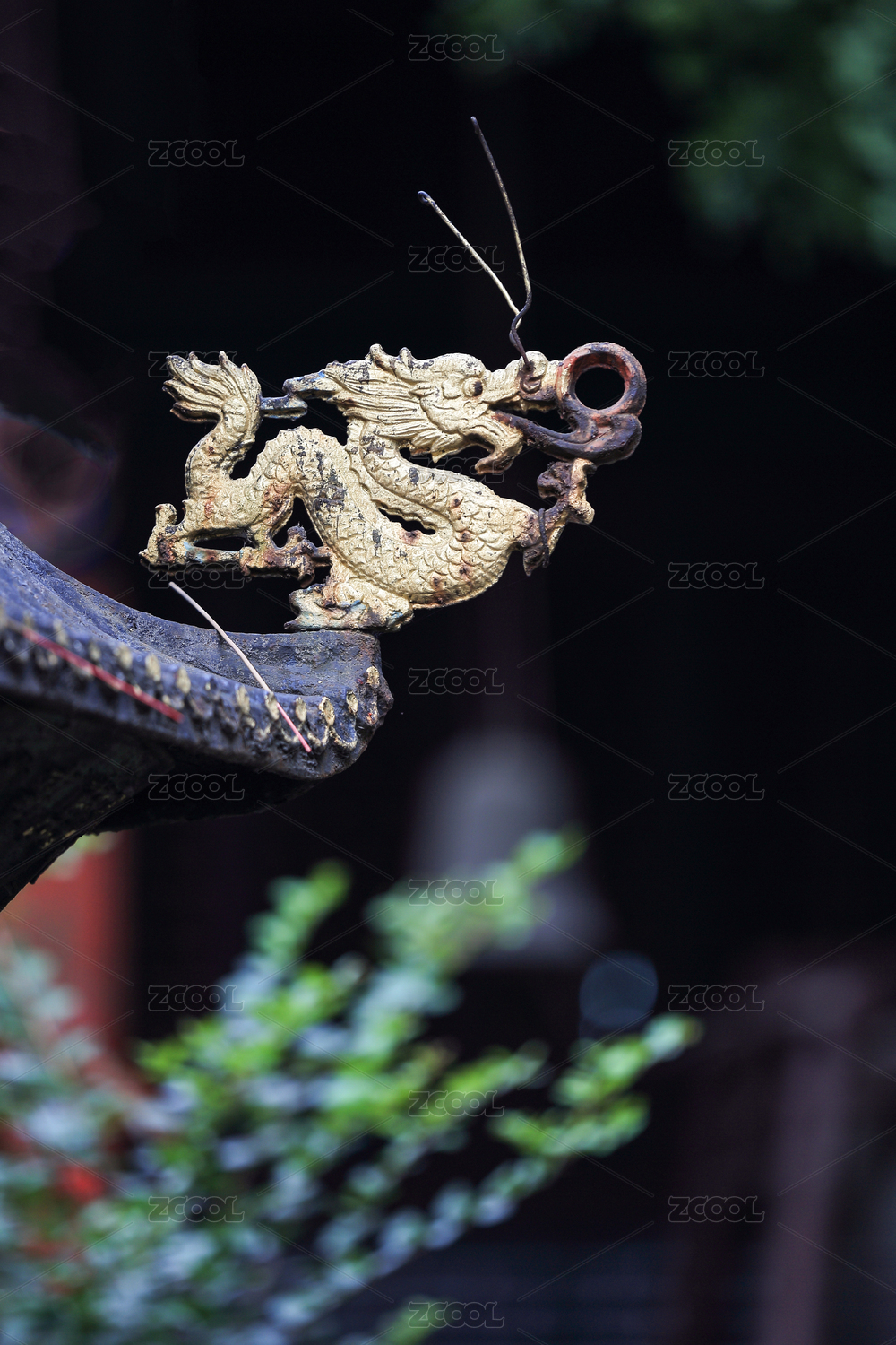 中國云南昆明黑龍?zhí)豆珗@里香爐上的銅龍